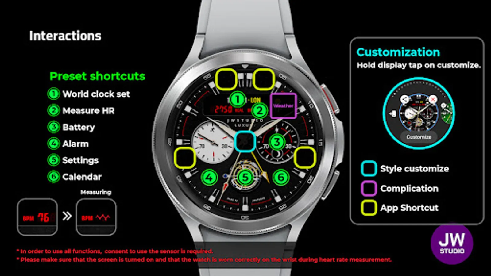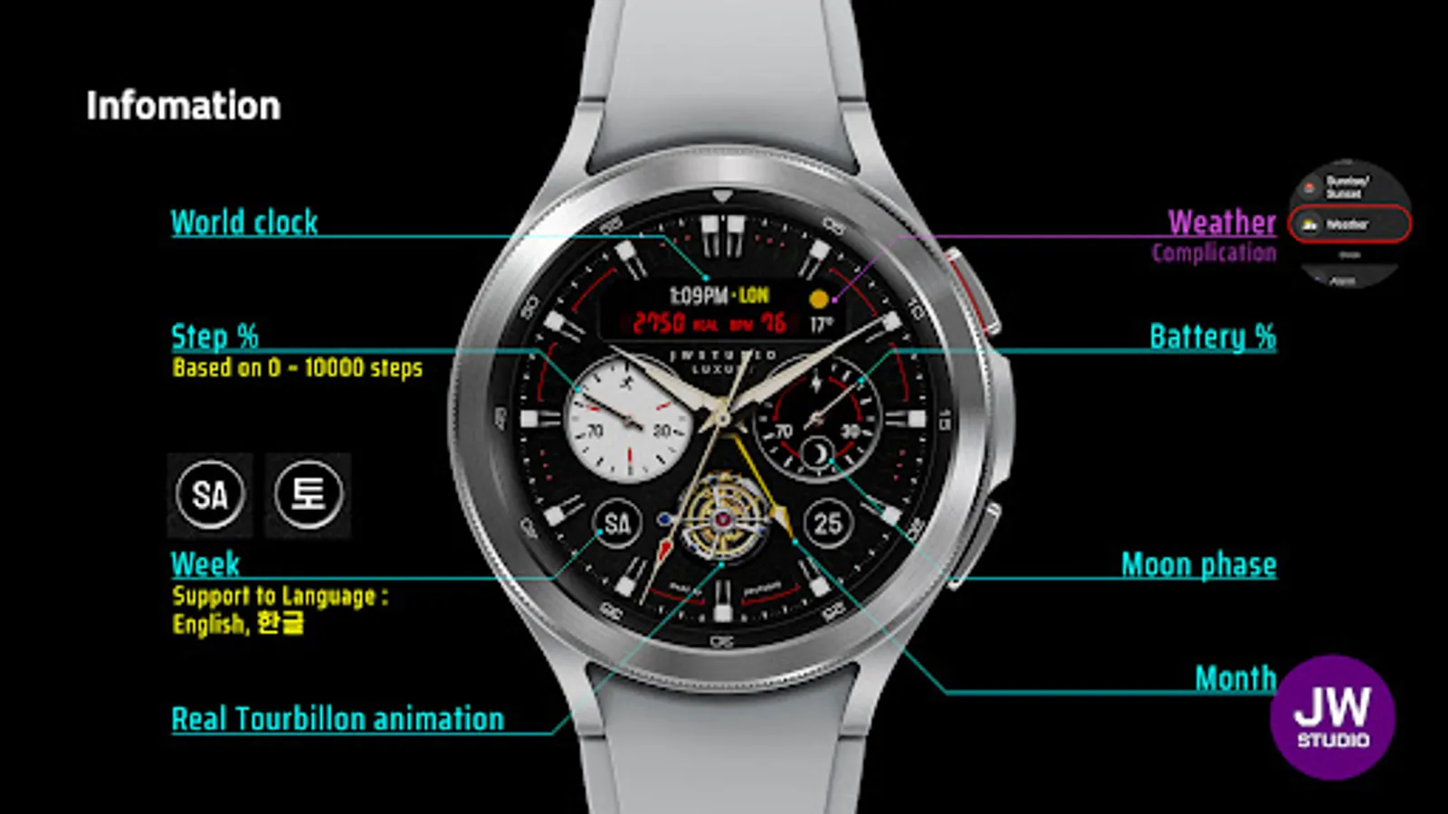 * 이 시계 모드는 Samsung Galaxy Watch 4와 같은 새로운 Wear Os Google / One UI Samsung 운영 체제 기반 장치용 Samsung의 새로운 "Watch Face Studio" 도구로 개발되었습니다.