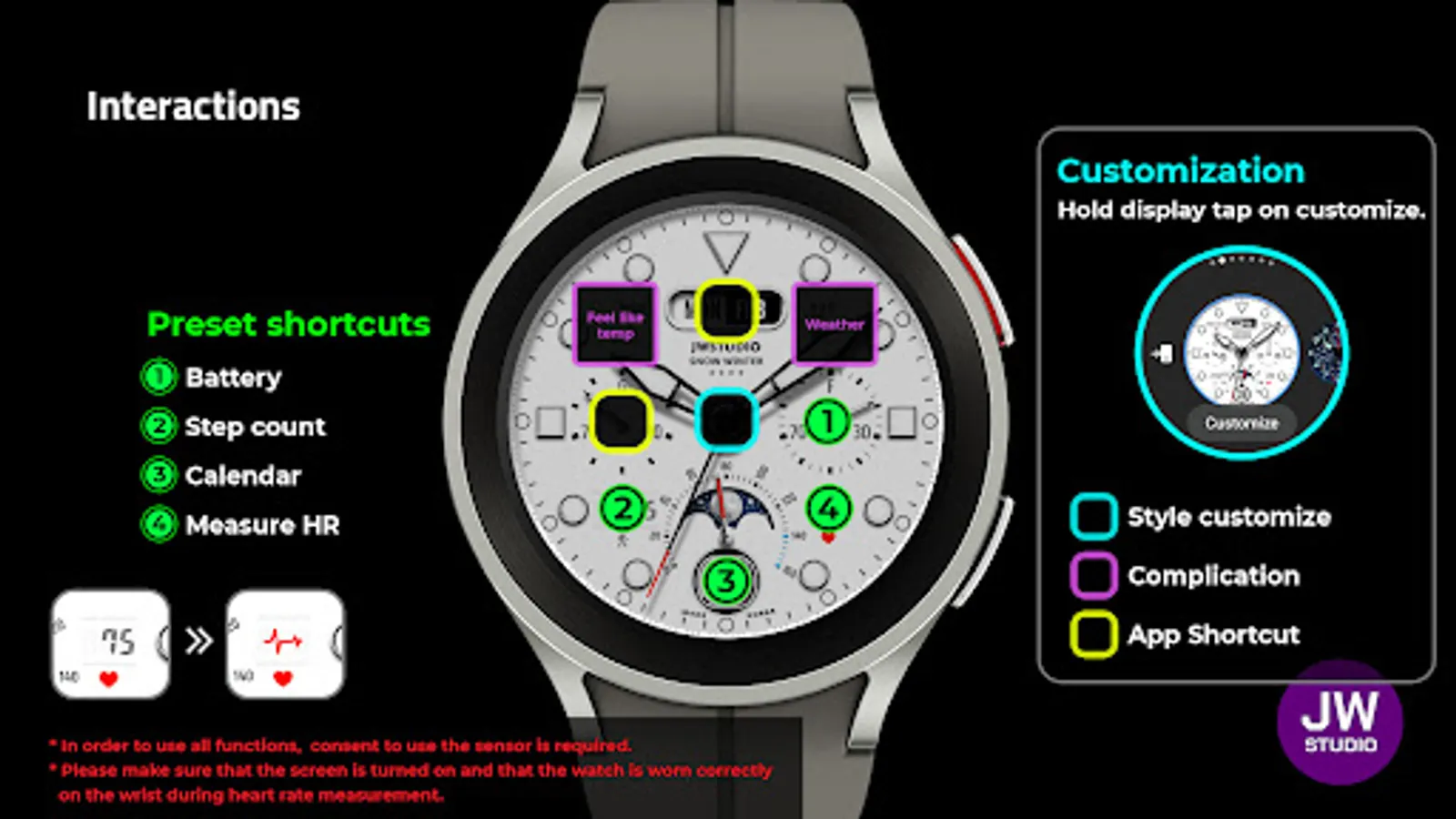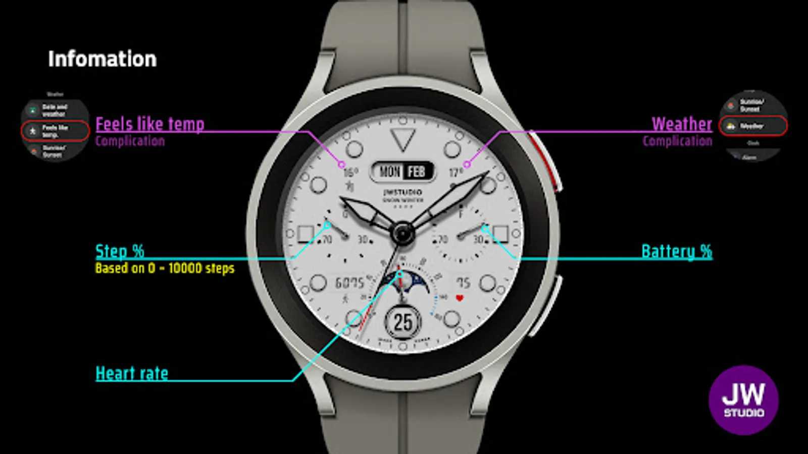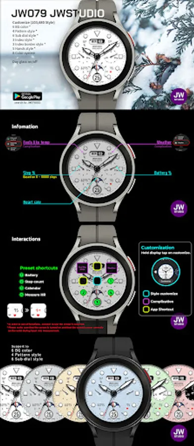 * 이 시계 모드는 Samsung Galaxy Watch 4와 같은 새로운 Wear Os Google / One UI Samsung 운영 체제 기반 장치용 Samsung의 새로운 "Watch Face Studio" 도구로 개발되었습니다.