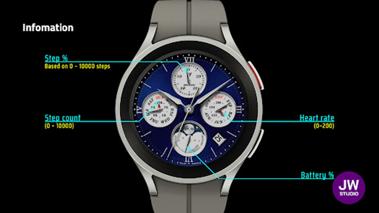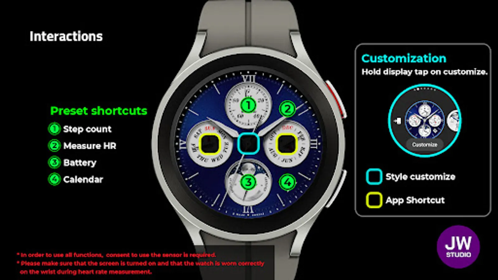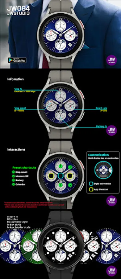 * 이 시계 모드는 Samsung Galaxy Watch 4와 같은 새로운 Wear Os Google / One UI Samsung 운영 체제 기반 장치용 Samsung의 새로운 "Watch Face Studio" 도구로 개발되었습니다.