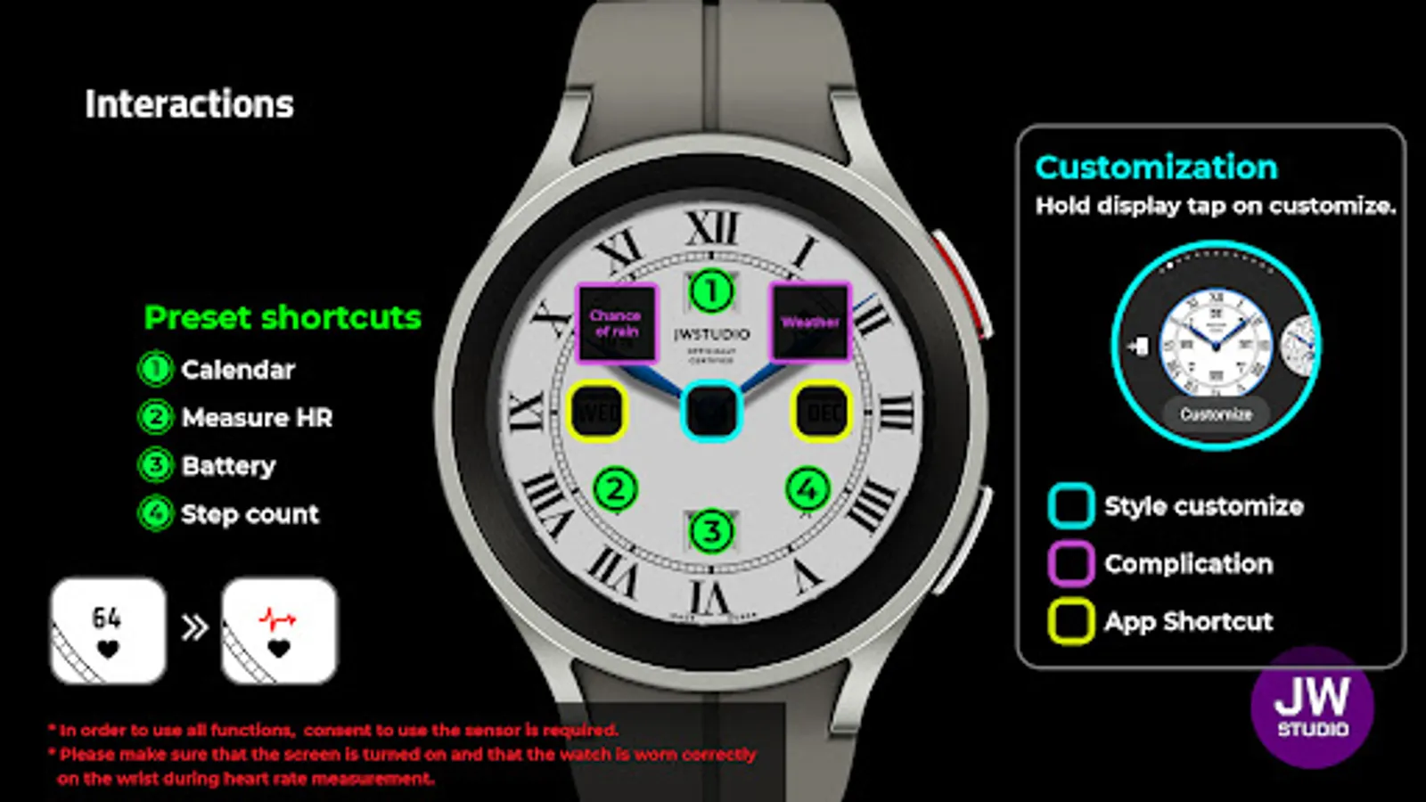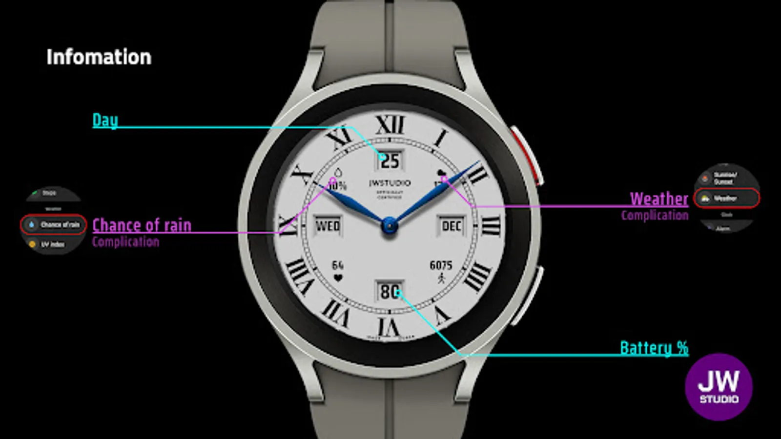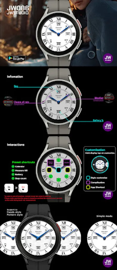 * 이 시계 모드는 Samsung Galaxy Watch 4와 같은 새로운 Wear Os Google / One UI Samsung 운영 체제 기반 장치용 Samsung의 새로운 "Watch Face Studio" 도구로 개발되었습니다.