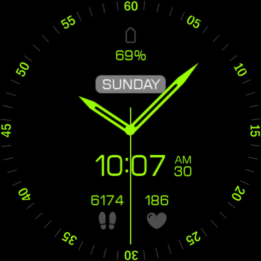 - have 14 color themes, Hold the watch face and press customize to change the colours