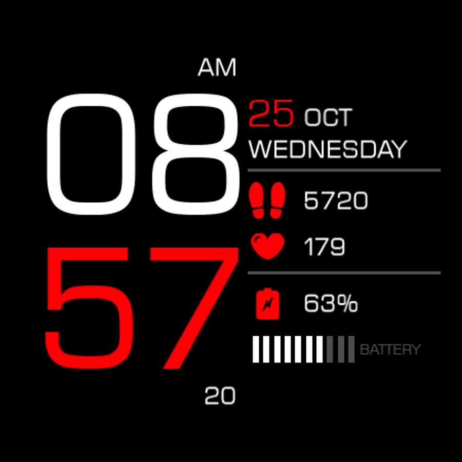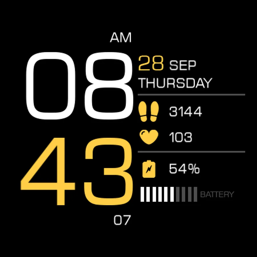 Key094 is a Big Digital Numbers with Simple Classic Design for Wear OS with features :