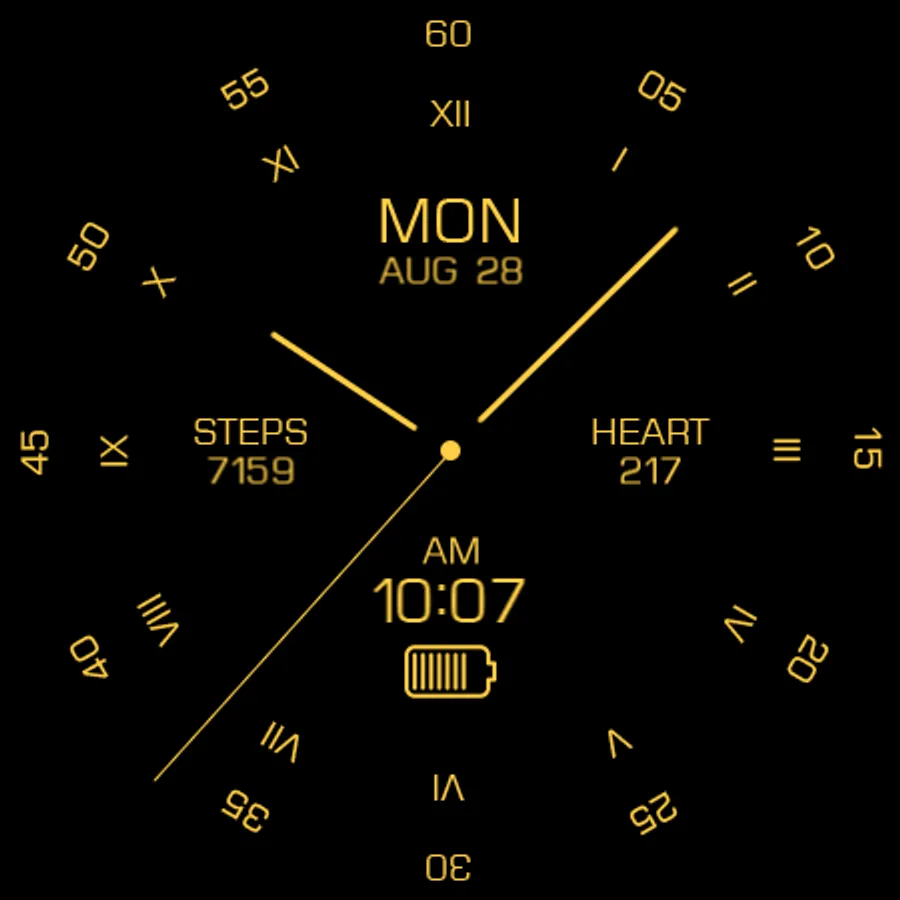 Key095 is Analog Watch Face with Gold Design for Wear OS with features :