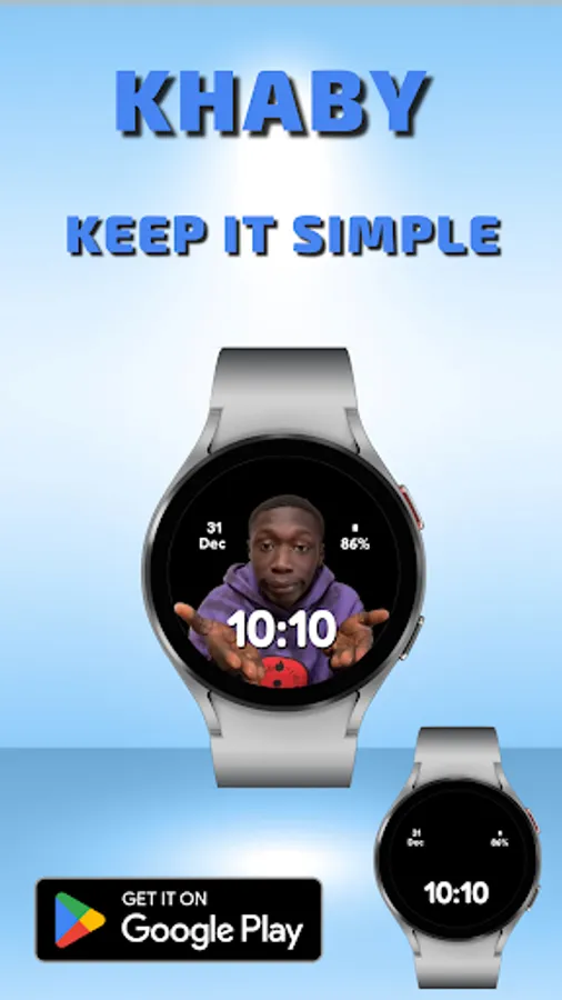 A simple watch face with everyone's loved Khaby, keeping it simple with the just the time, date and battery percentage - the essentials.