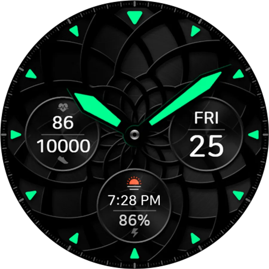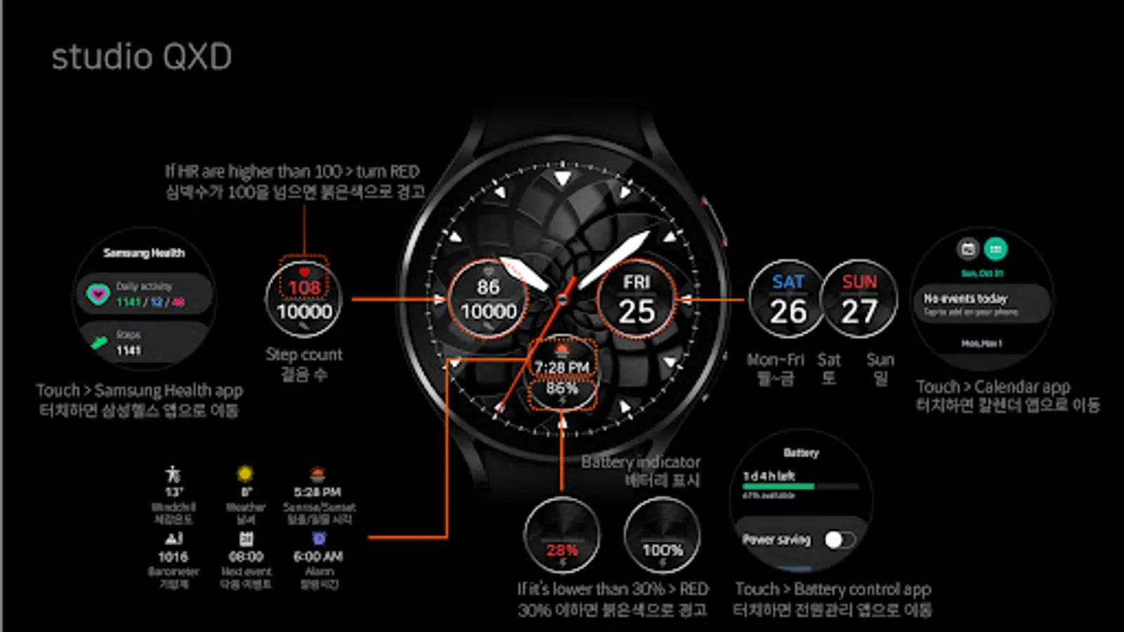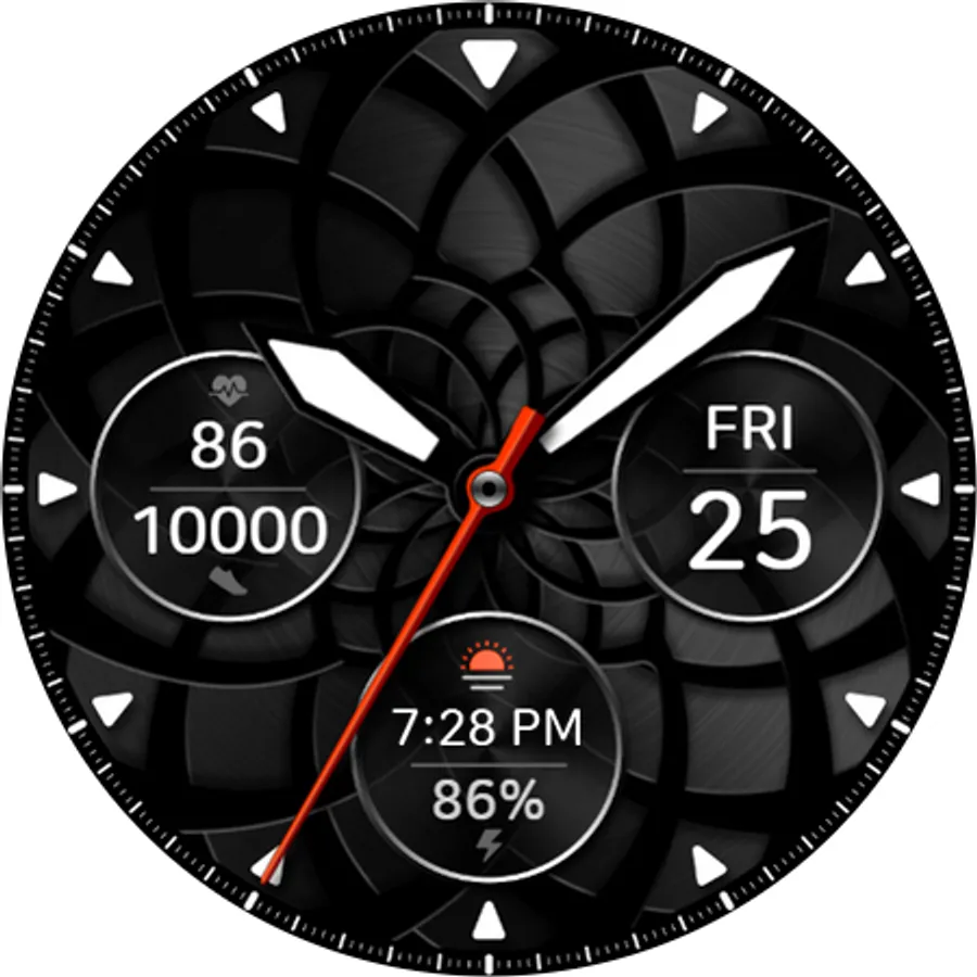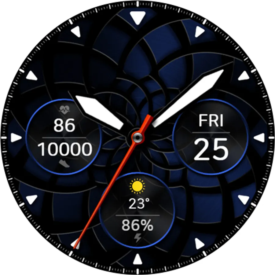 - Customizable information text and icon such as weather, next event, barometer, alarm, etc.