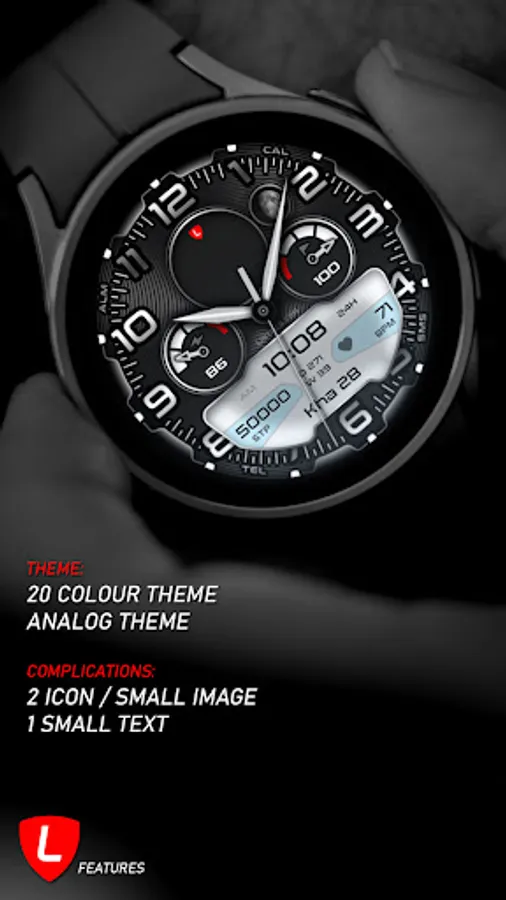 An analogue watch face with a wide range of customization options, providing the ultimate experience. Introducing our exceptional watch face, packed with an array of impressive features: