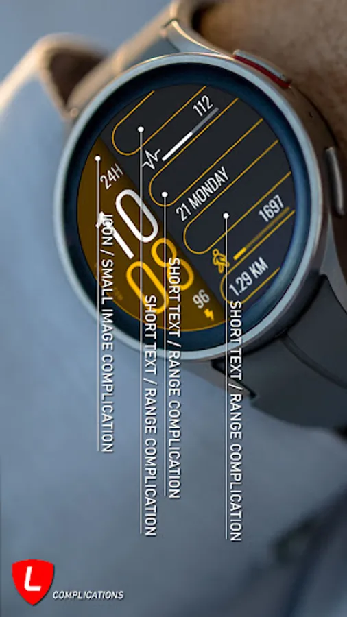 ✦ Enhance your watch face with 3 short text / Range value complications from a curated list of options.