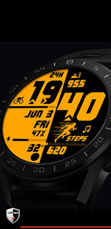 Lihtnes Sports 019 is the colorful, bright, sporty watch face with a Bold look.