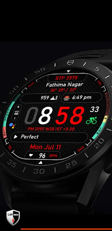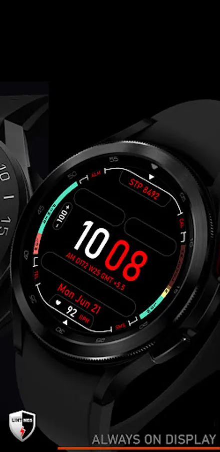 ✦ Heart rate measuring indicator (heart icon turns red while measuring)