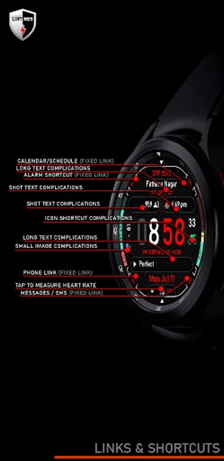 ✦ Fixed links: TEL= Phone, SMS= Messages, ALM= Alarm and CAL= Calendar