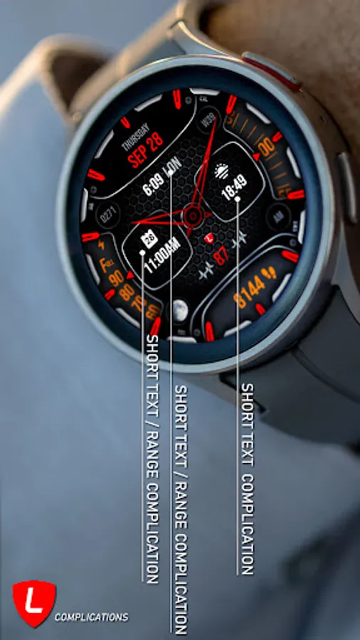 ✦ Enhance your watch face with 3 short text / Range value / icons / Small image complications from a curated list of options.