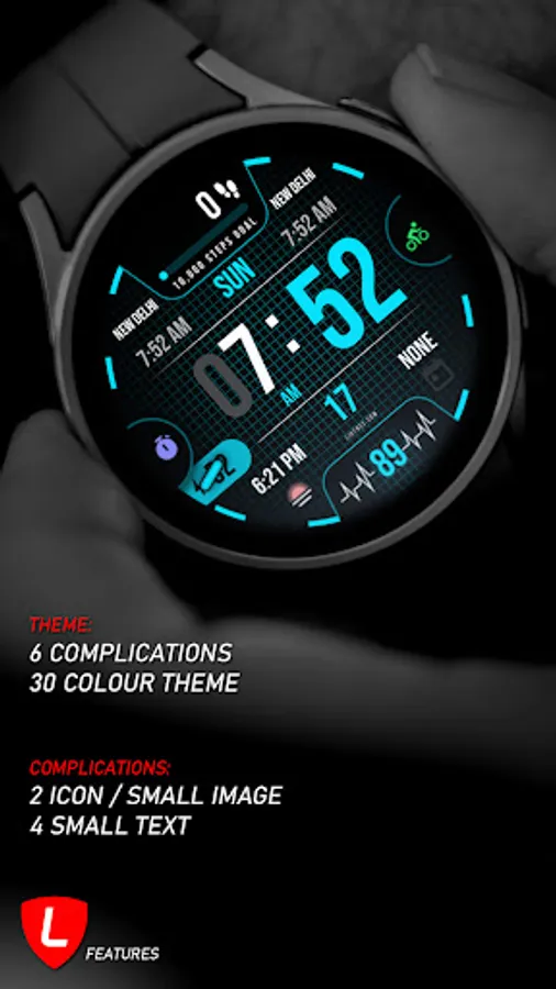 ✦ Explore 30 color theme options to personalize your watch face according to your preferences.