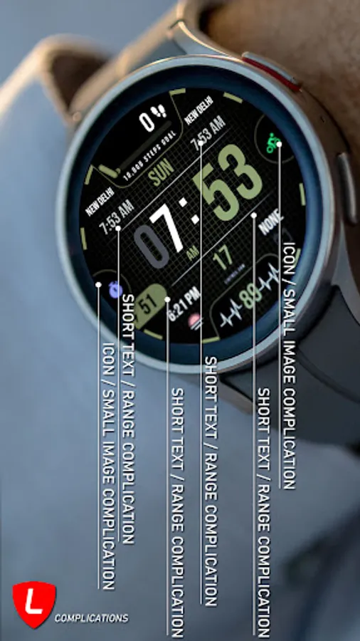 ✦ Add visual interest with 2 icon / Small image complications from a diverse selection of choices.