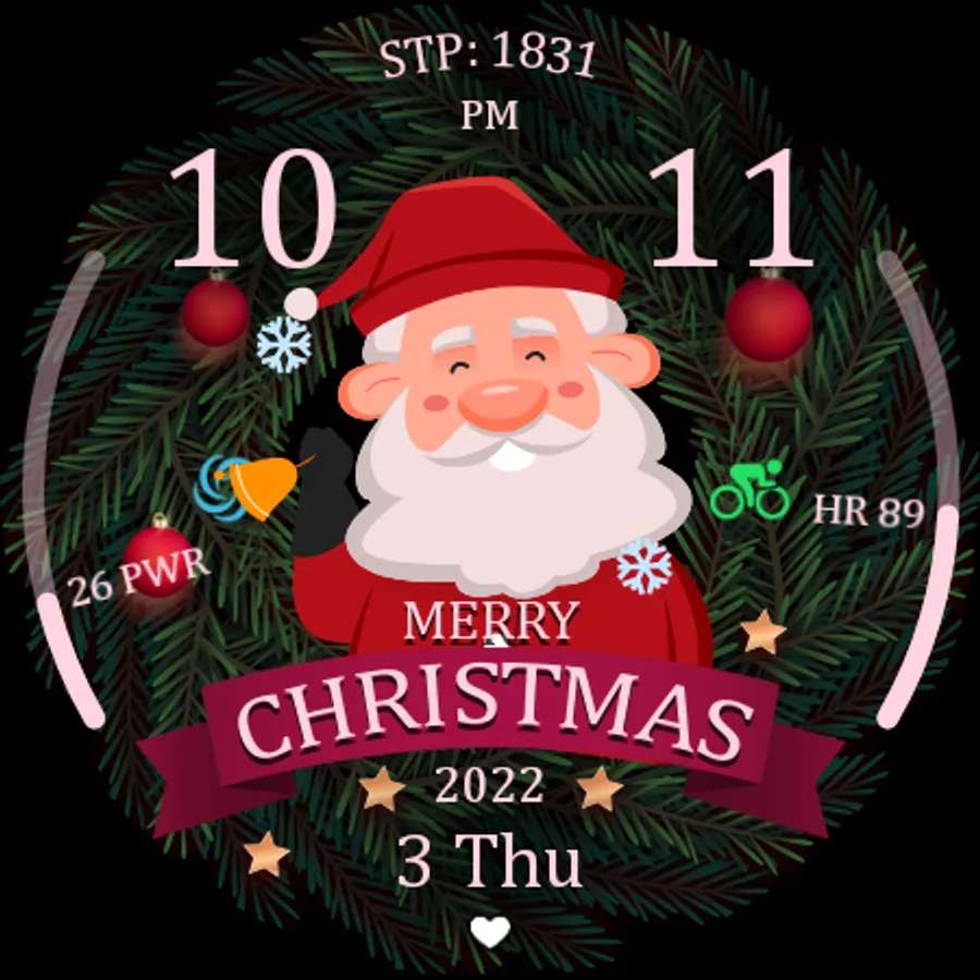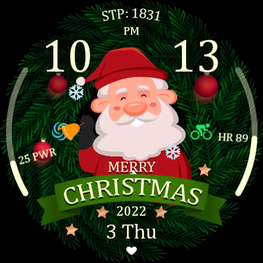 Christmas Watch Face 076 For the holidays I have handcrafted an animated Santa Claus Christmas watch face that convey your wishes to everyone.
