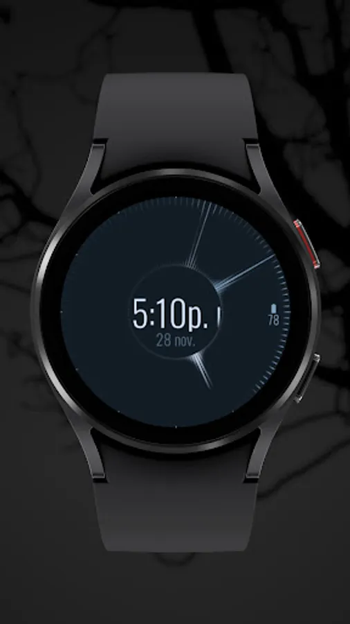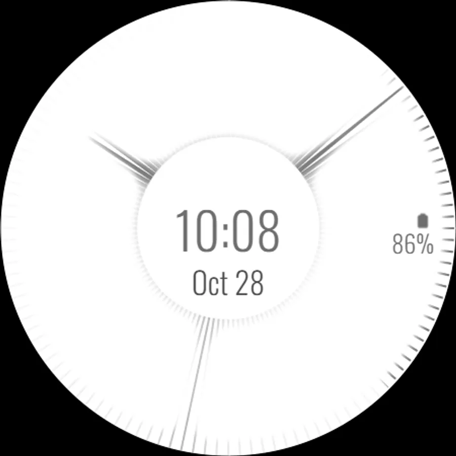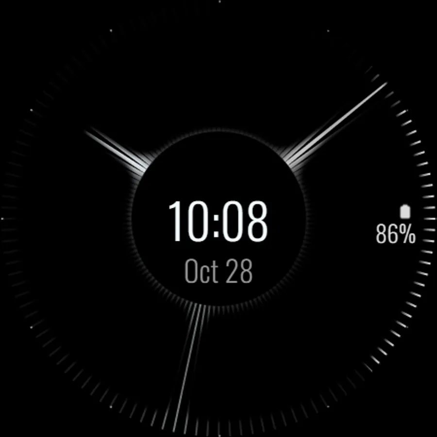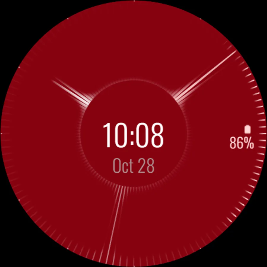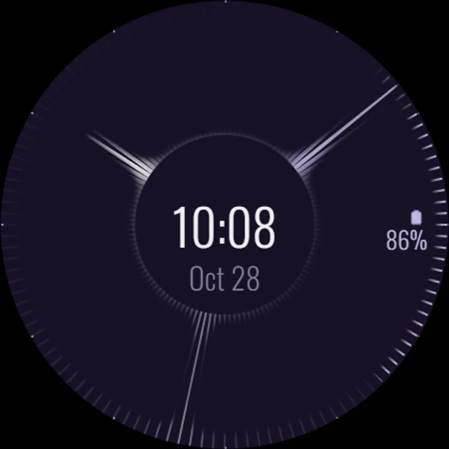 This watch face takes the sci-fi concept and makes it more elegant and minimal. It has three programmable complications, one in the center and two on each side.