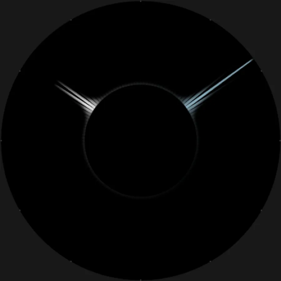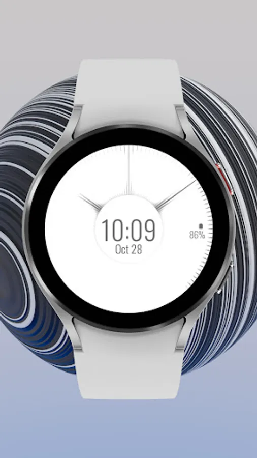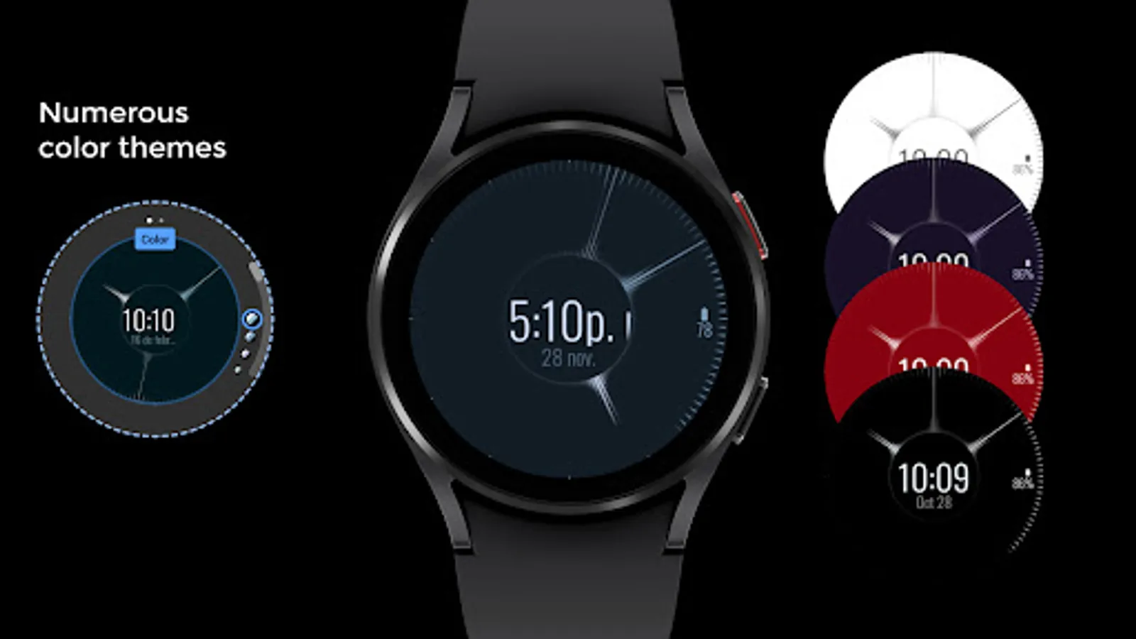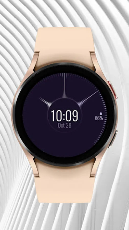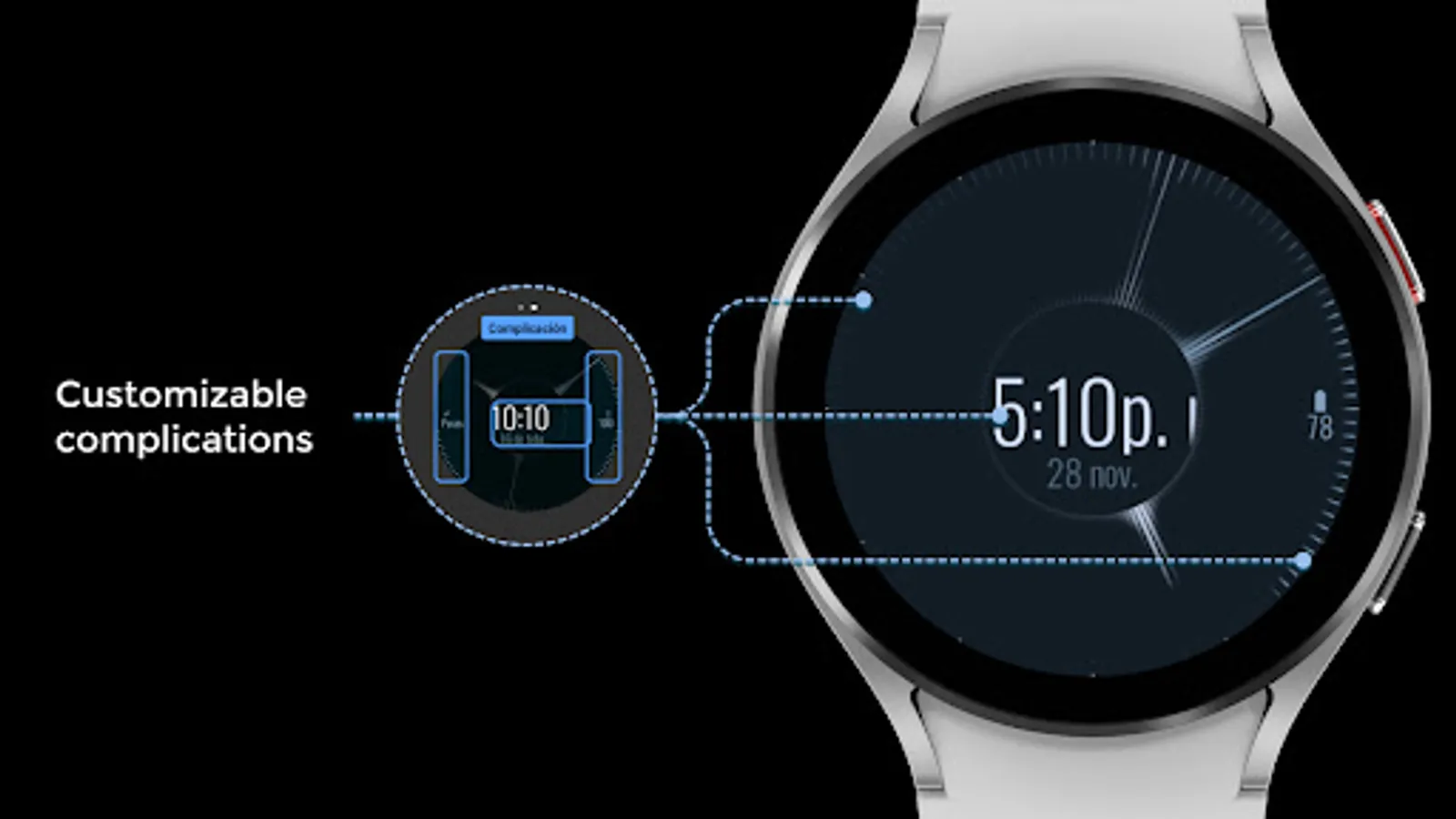This watch face takes the sci-fi concept and makes it more elegant and minimal. It has three programmable complications, one in the center and two on each side.