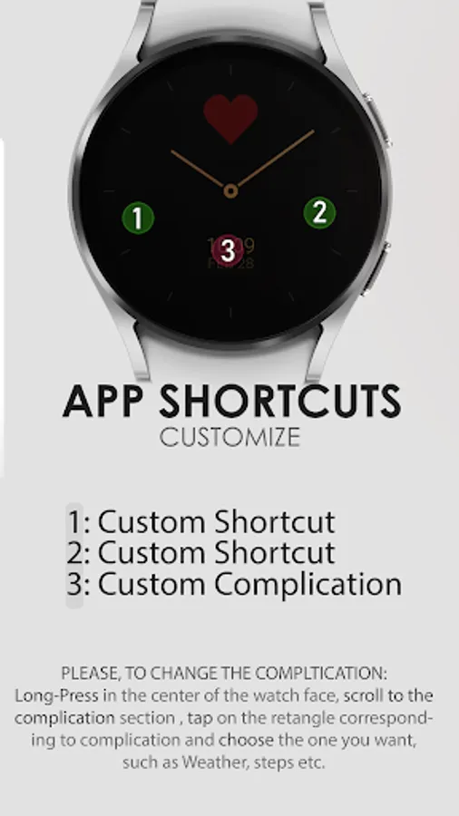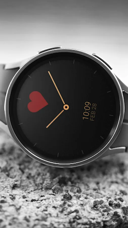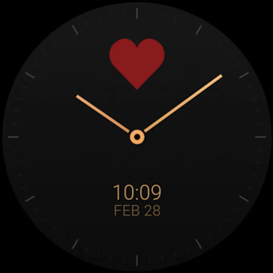 Upgrade your style this Valentine's Day with the Gold Love Watch Face. With its elegant and minimal design, this watch face features a dark grey background, golden hands, and a large heart at the top. Perfect for those who love all things gold and minimal.