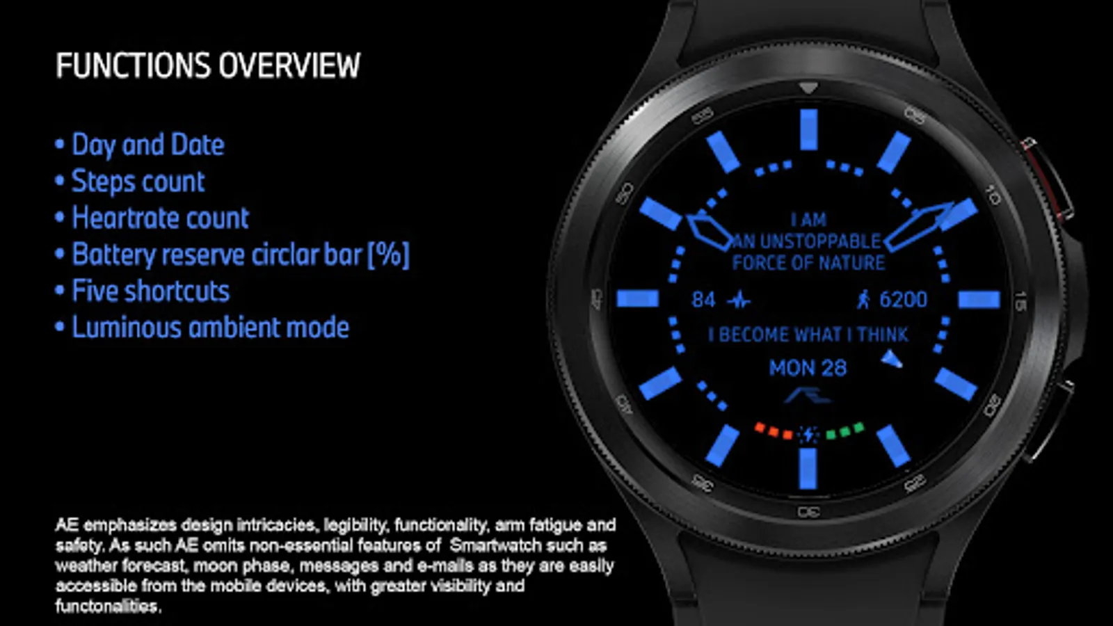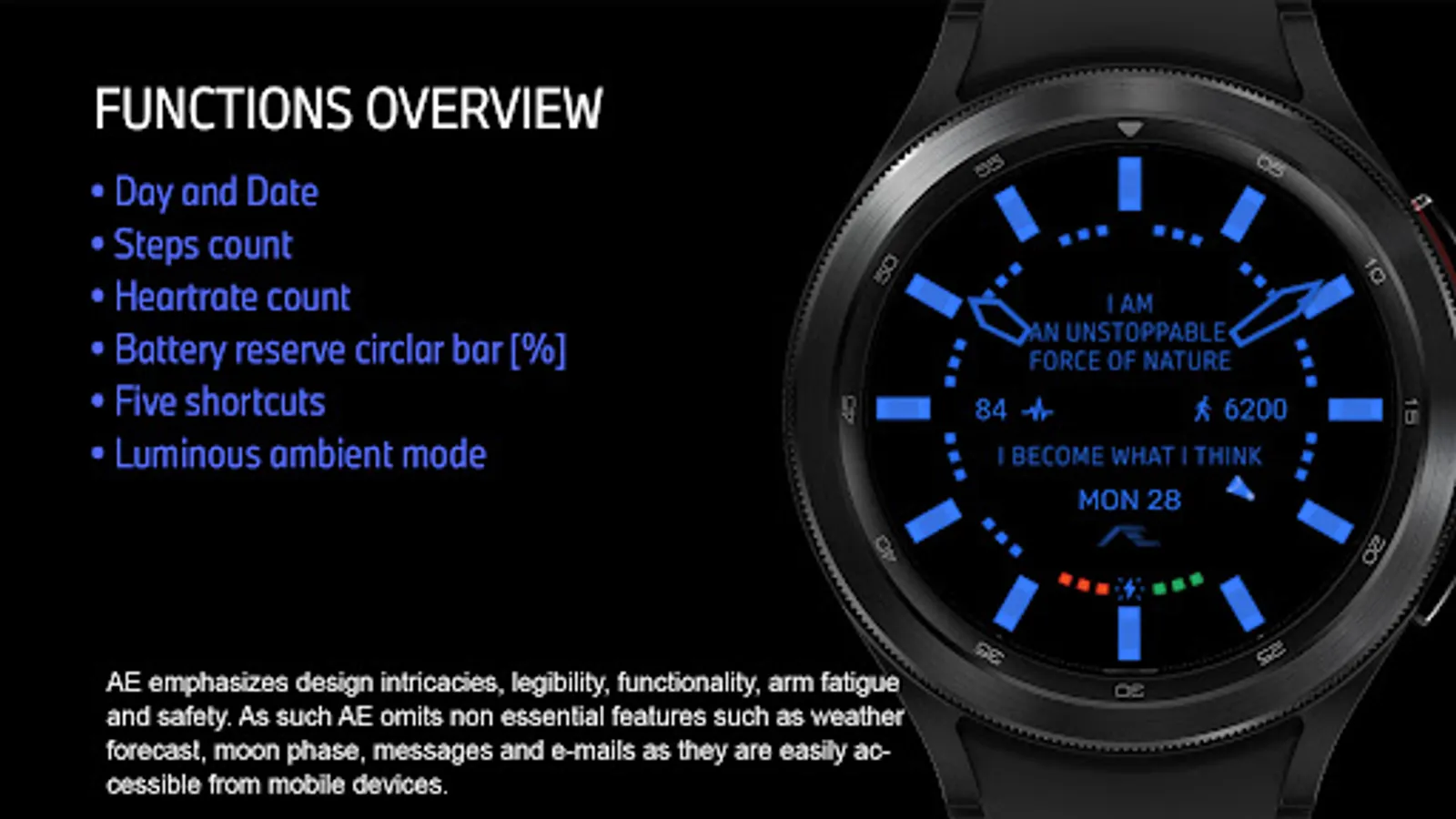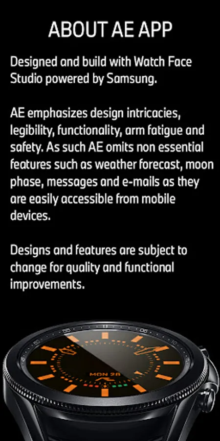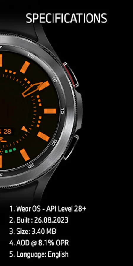 Build with Watch Face Studio powered by Samsung. Tested on Samsung Watch 4 Classic, all features, and functions worked as intended. The same may not apply to other Wear OS watches. If prompted your device is not compatible, exit Play Store and access via PC web browser or from the Watch.