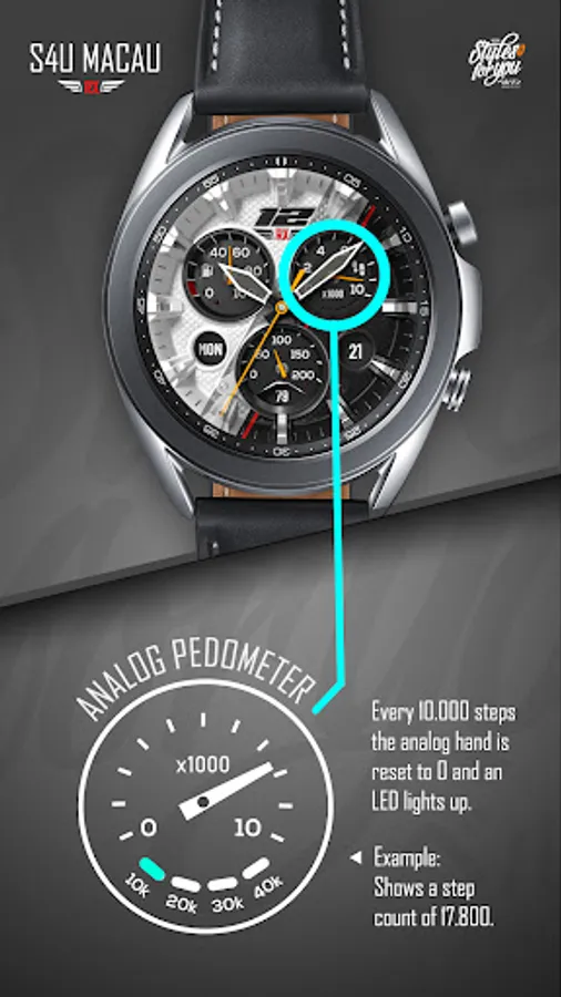 The S4U Macau RX is an super realistic analog dial and has an extremely sporty racing look.