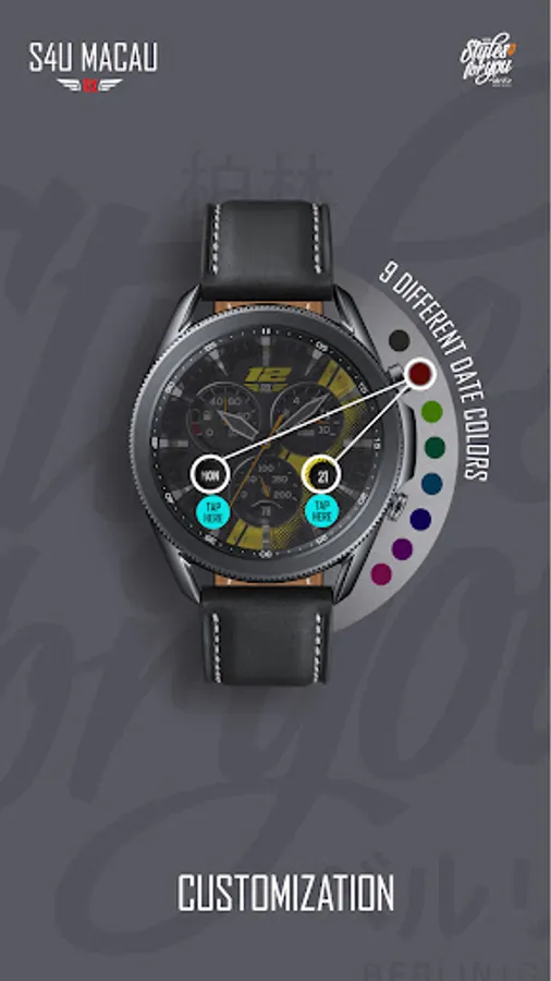 The extraordinary 3D effect gives you the feeling of wearing a real watch. The color scheme is highly customizable. You are able to change the background designs, the color of the small hands, the seconds hand and the date background. You can also set up 5 custom shortcuts to get to your favorite app with just one click.