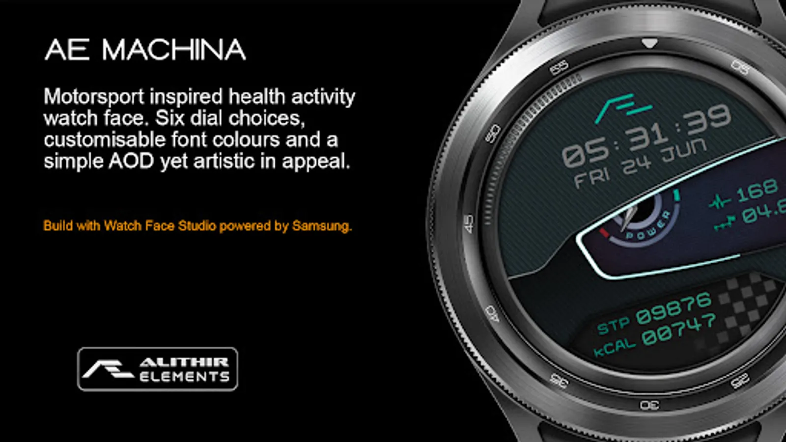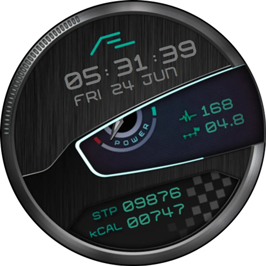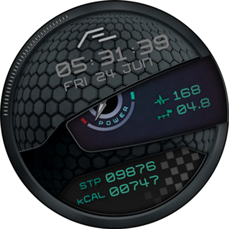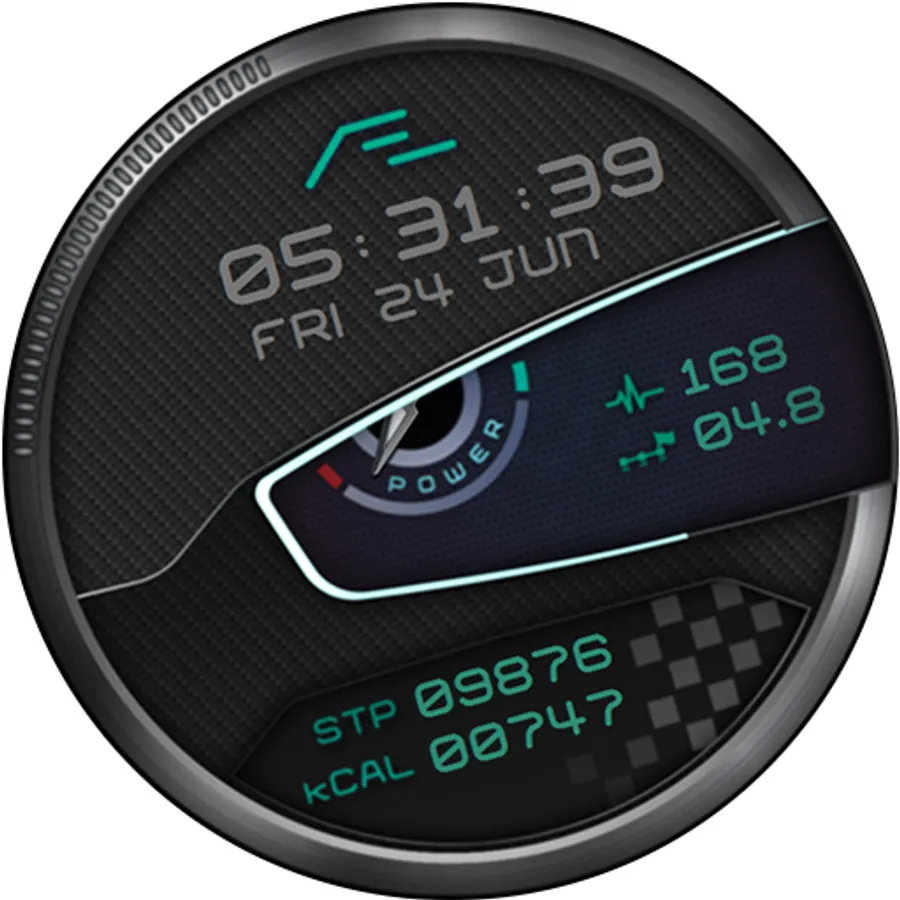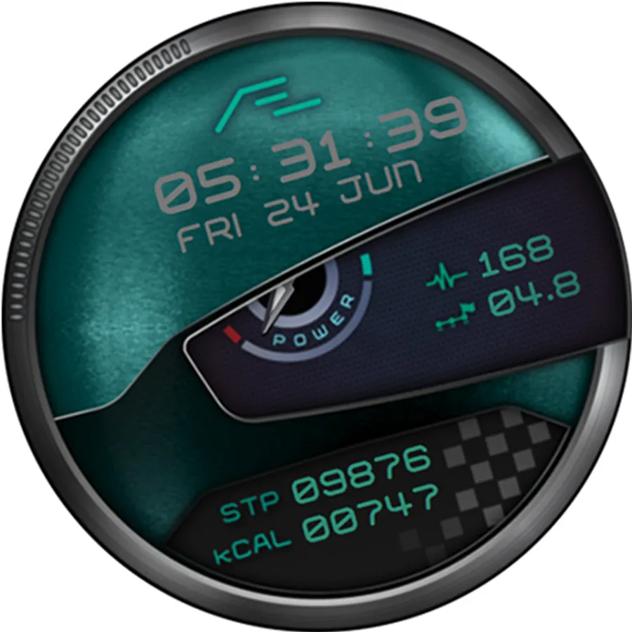 Motorsport inspired health activity tracking watch face. Six dial choices, customizable font colors and a simple yet artistic ‘Always On Display’.