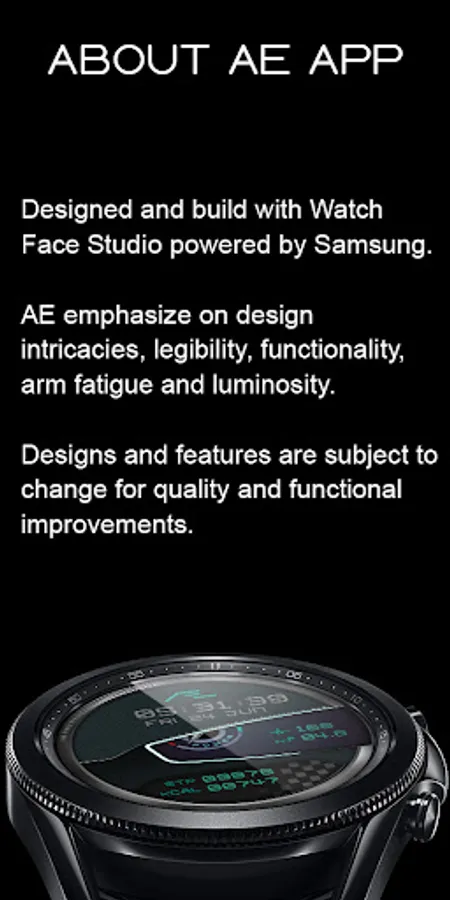 All functions and features of this App has been tested on Galaxy Watch 4 and worked as intended. The same may not apply with other Wear OS devices. App is subject to change for quality and functional improvements.
