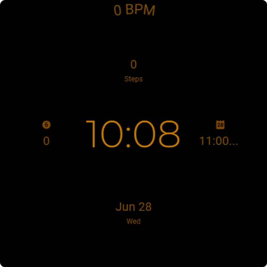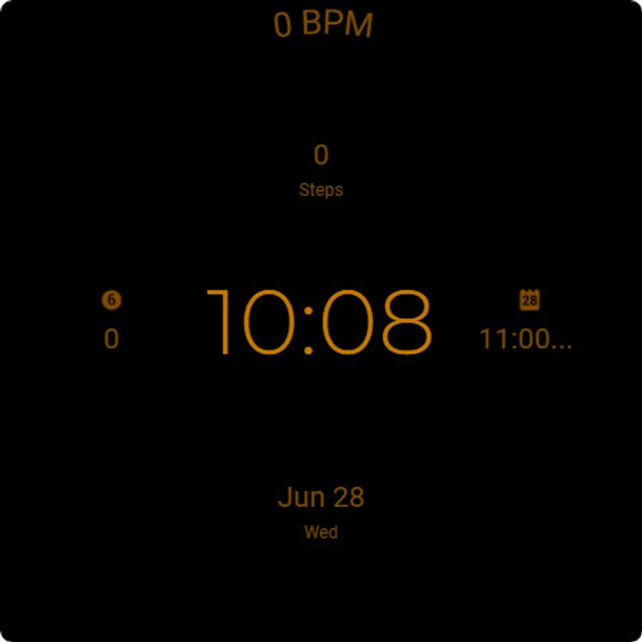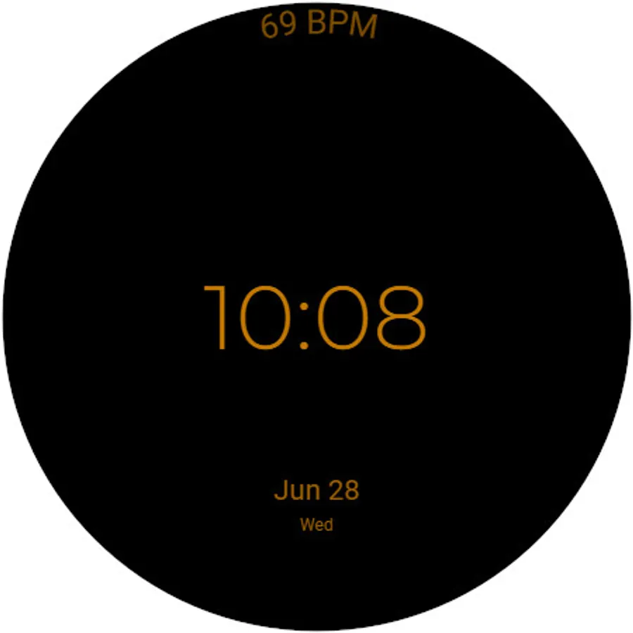 Simple watch face with time and heart rate that doesn't use a lot of battery. You can add up to 4 complications of your choice to have more or less info on your watch face.