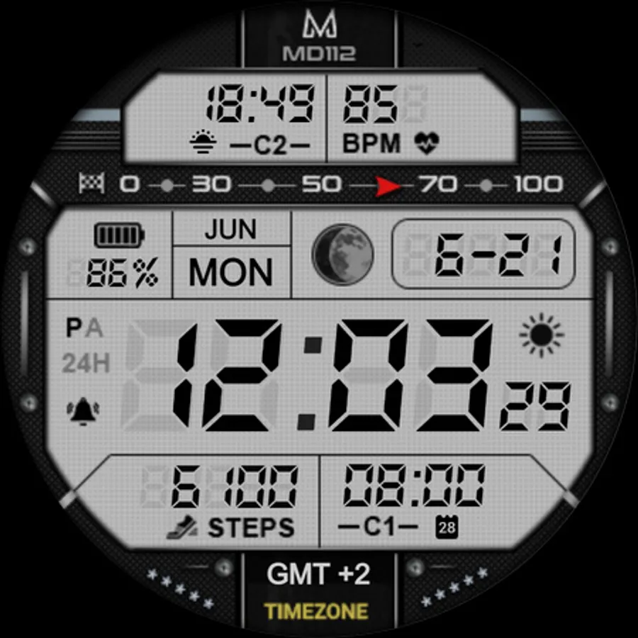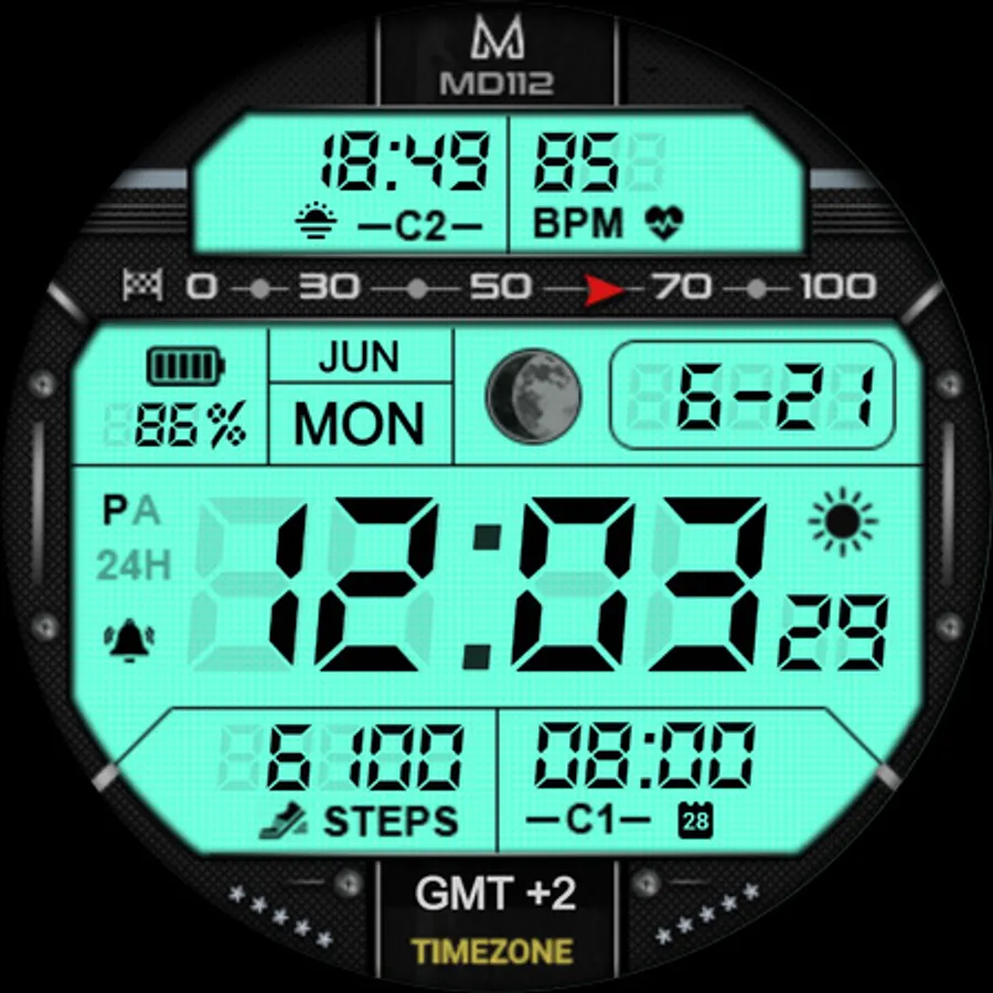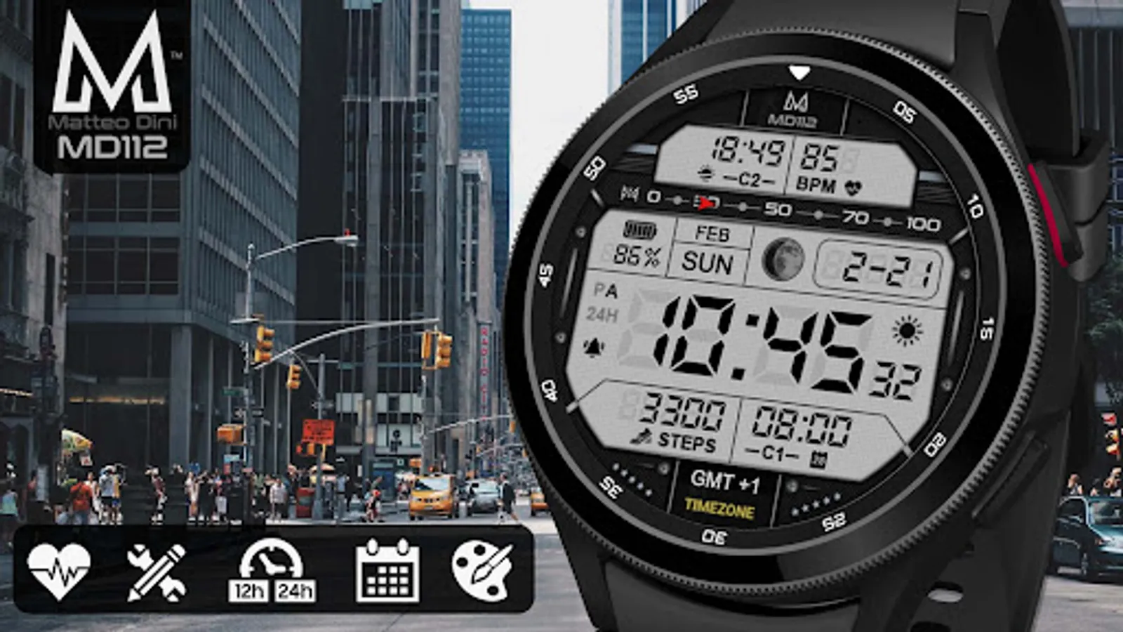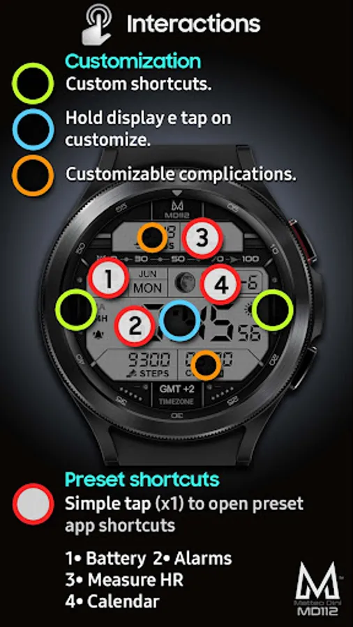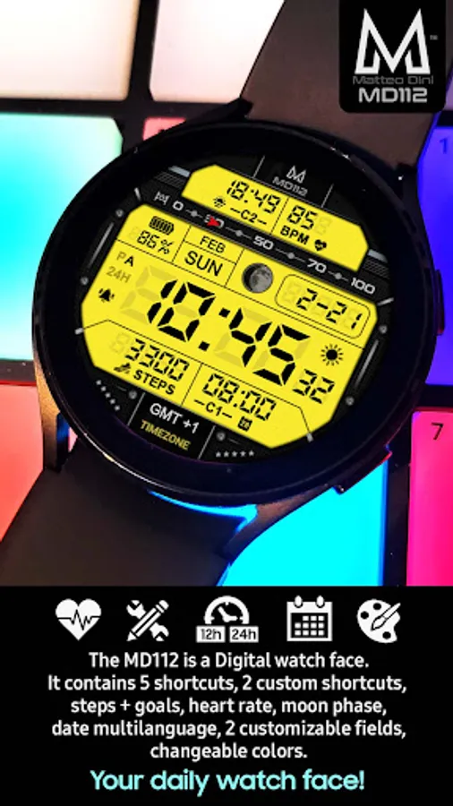 The MD112 is a Digital Watch face for Wear OS by Matteo Dini MD.
