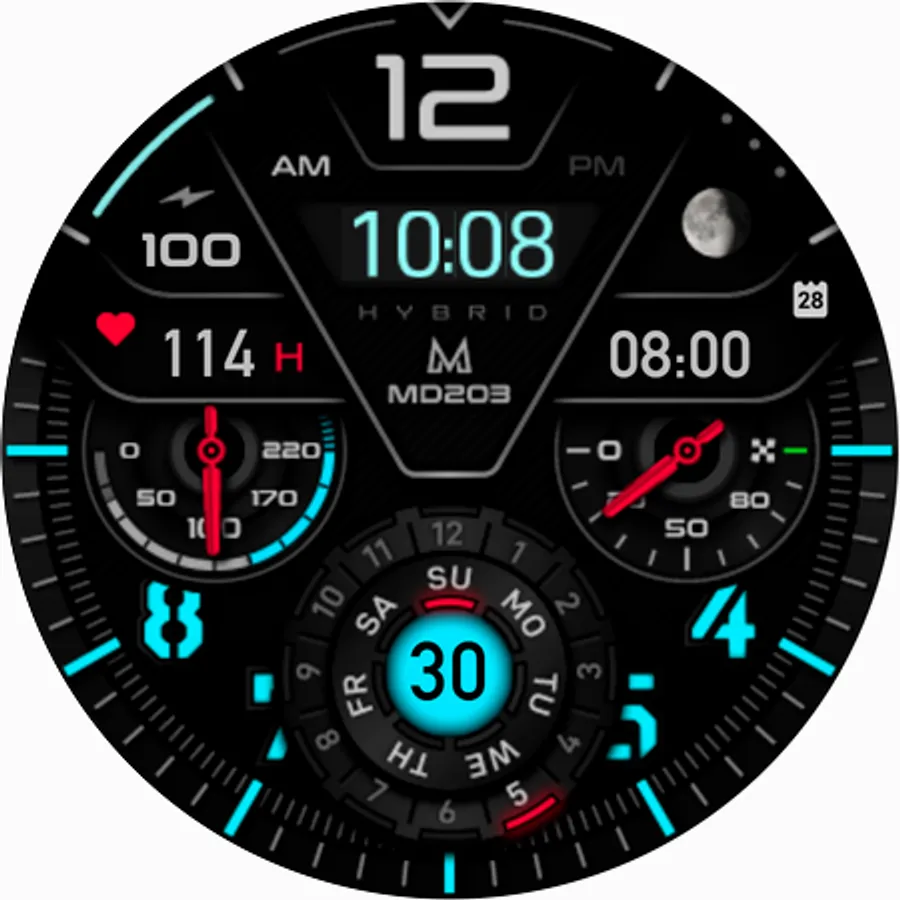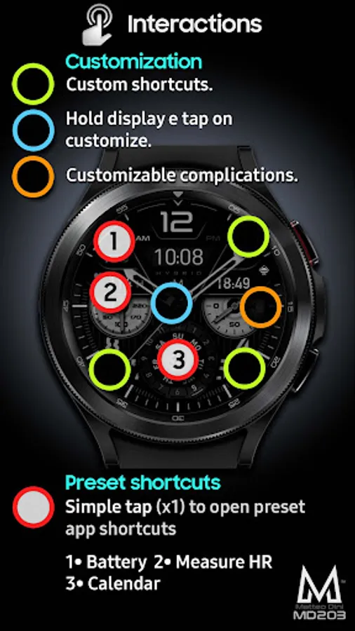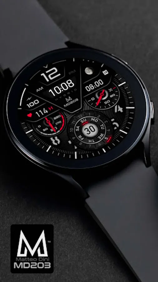The MD203 is an Hybrid Wear OS watch face by Matteo Dini MD.