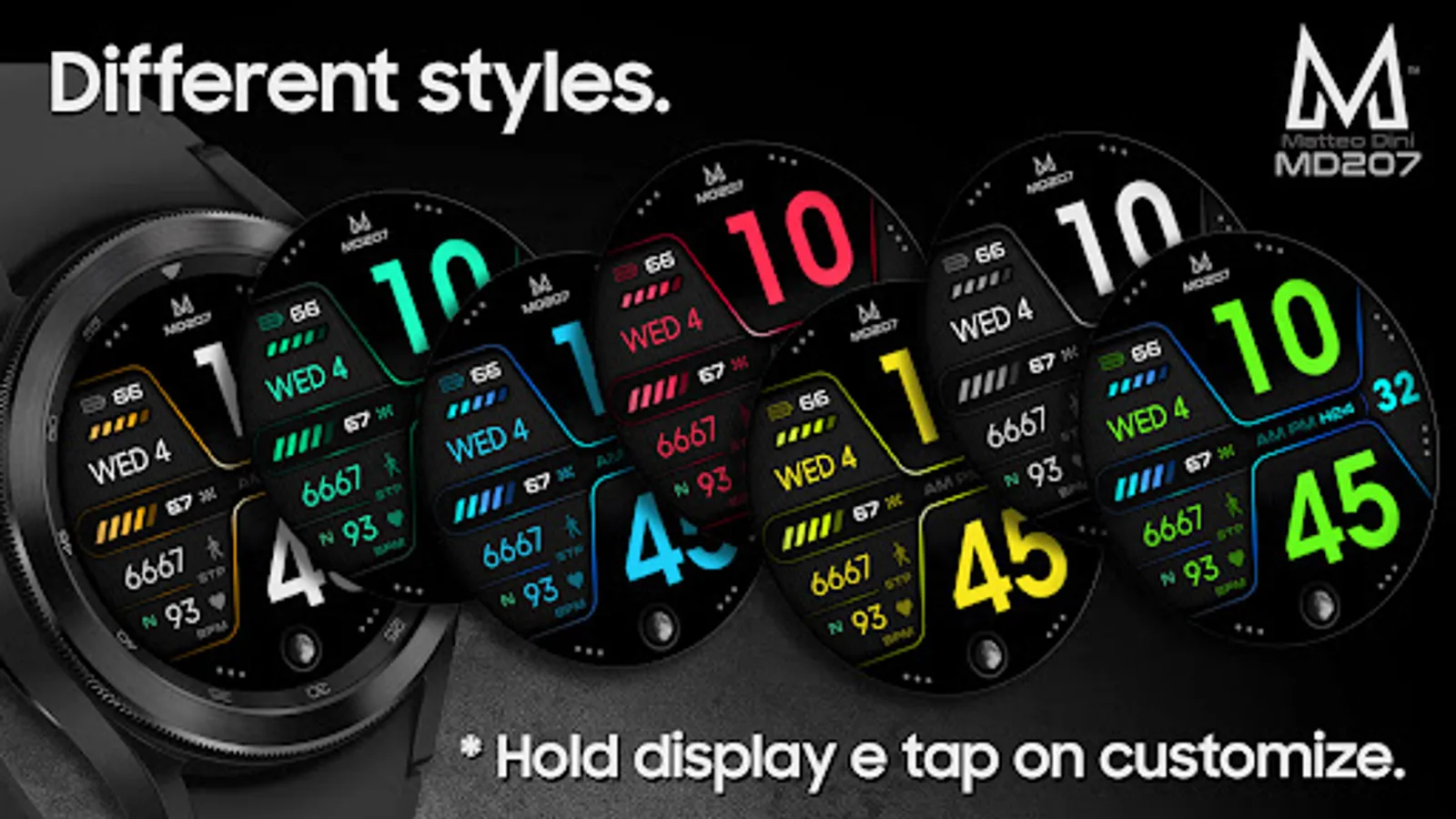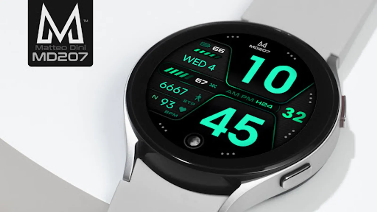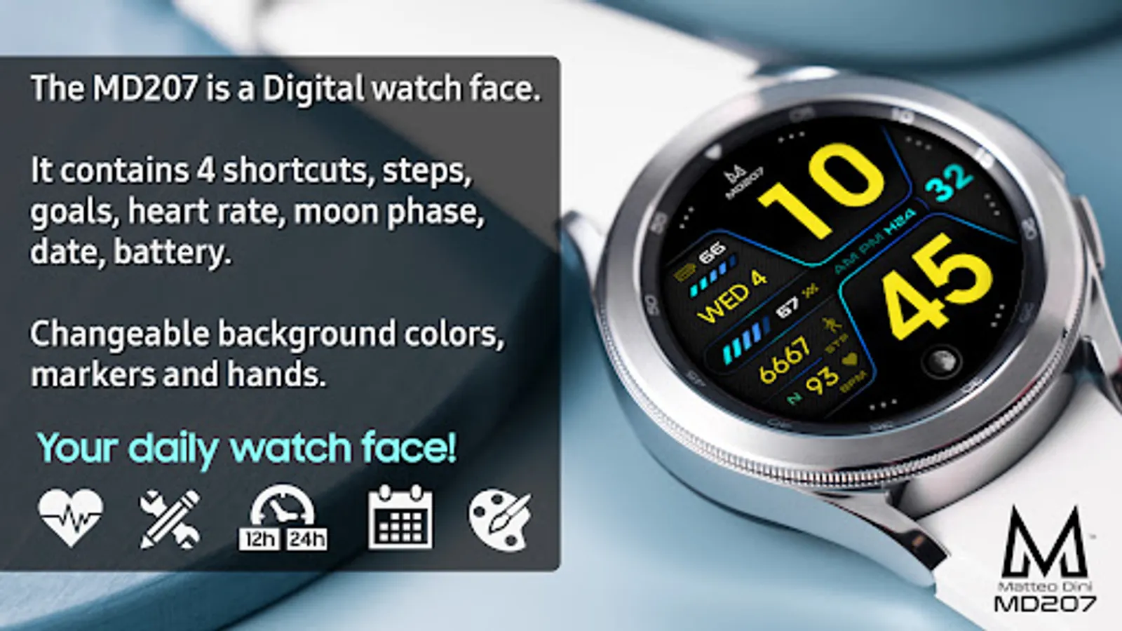 The MD207 is an essential Digital Watch Face with Big Numbers for Wear OS designe by Matteo Dini MD.