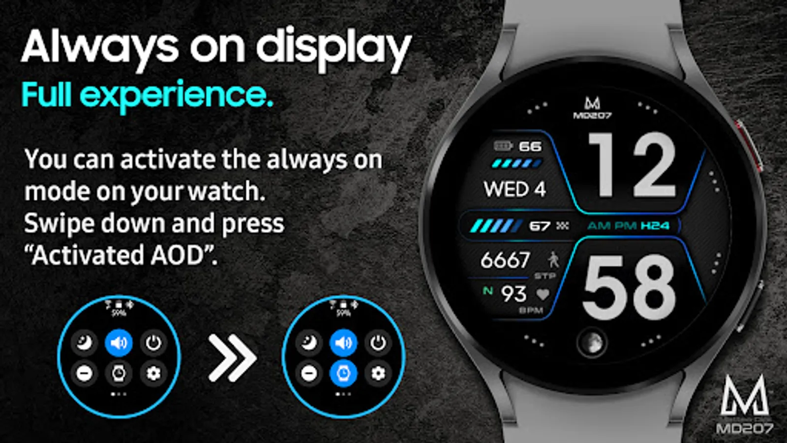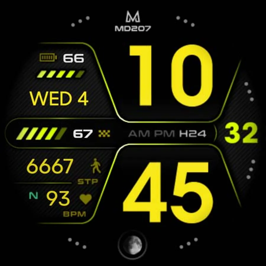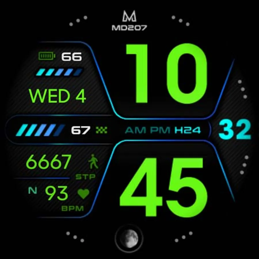 The MD207 is an essential Digital Watch Face with Big Numbers for Wear OS designe by Matteo Dini MD.
