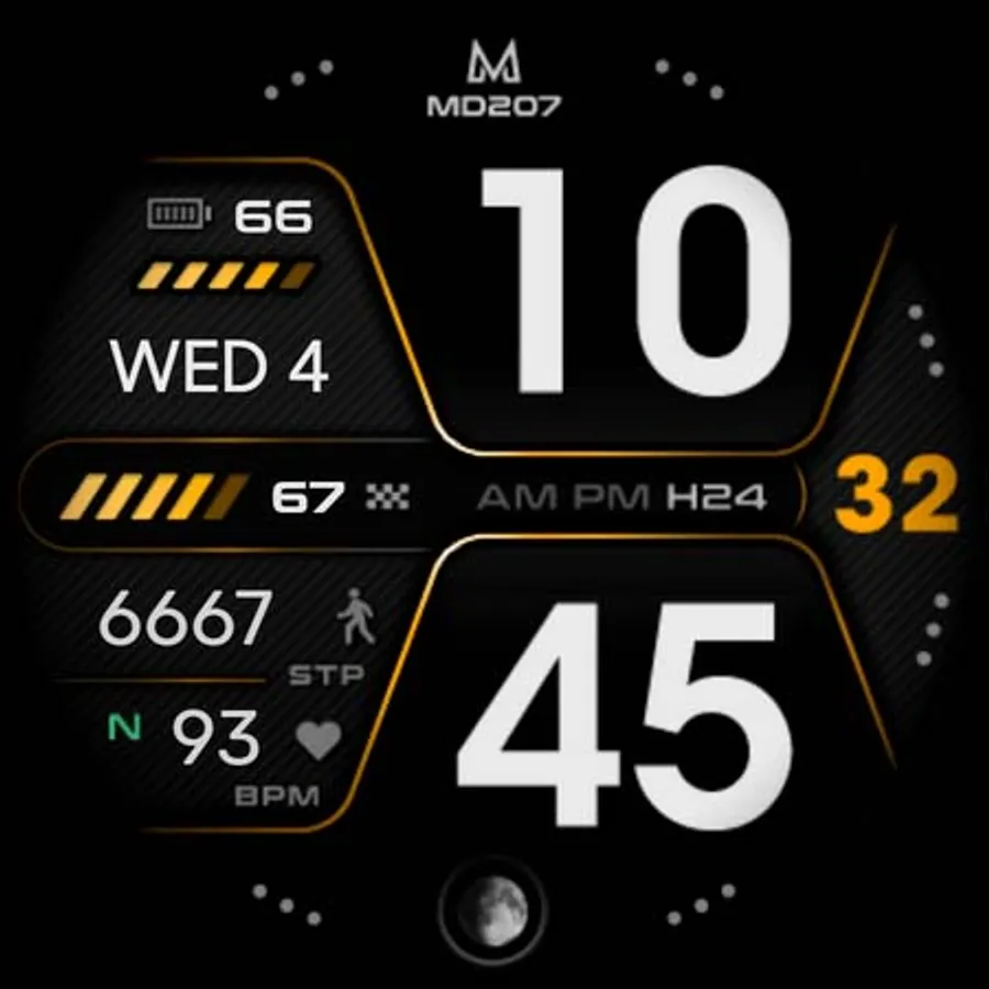 It contains 3 Preset App shortcuts, 6 cutomizable shortcuts, Steps, Heart Rate, Date Multilanguage, changeable colors and more.
