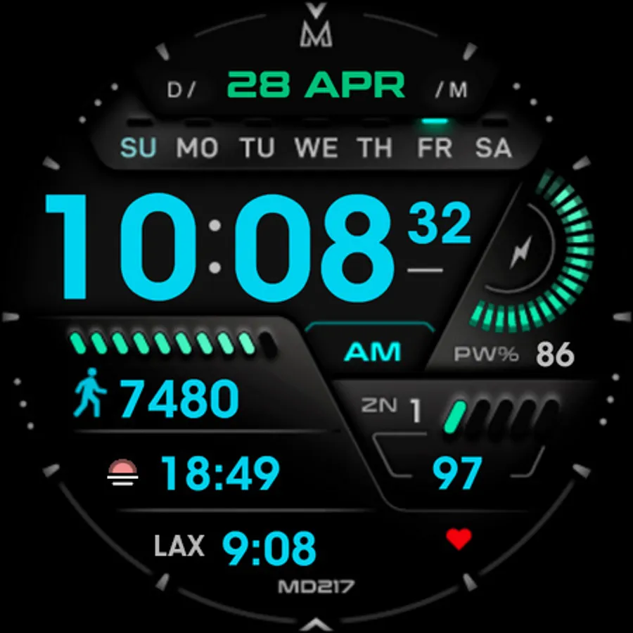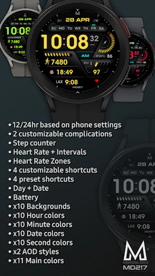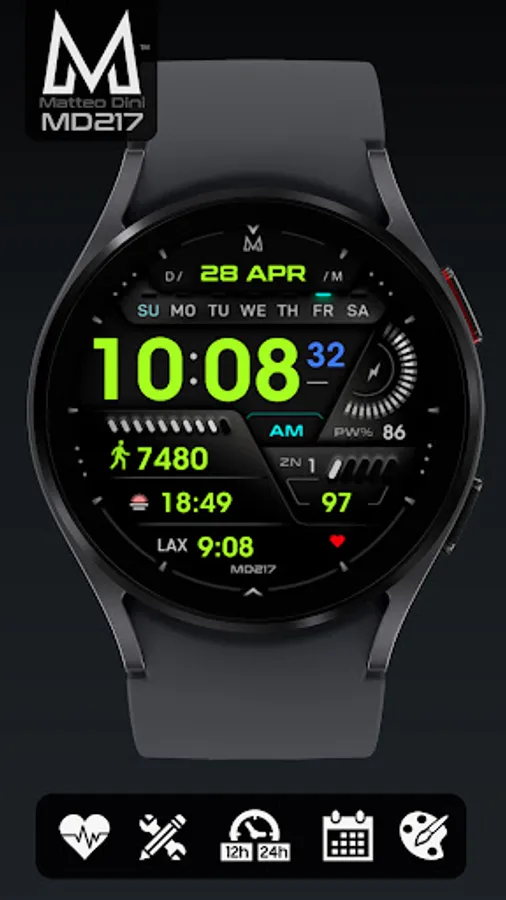 The MD217 is a Digital Watch face for Wear OS by Matteo Dini MD.