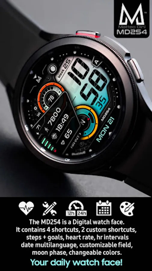 The MD254 is a Digital Watch face for Wear OS by Matteo Dini MD.