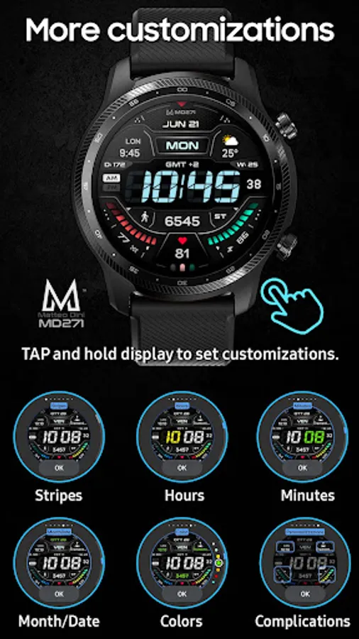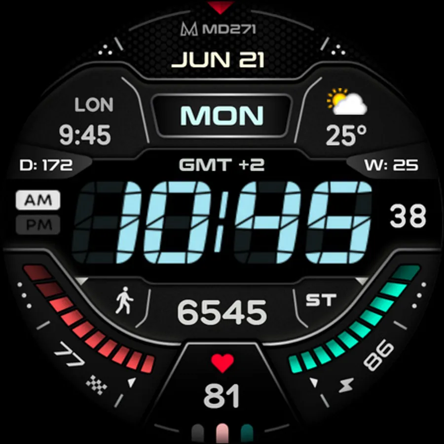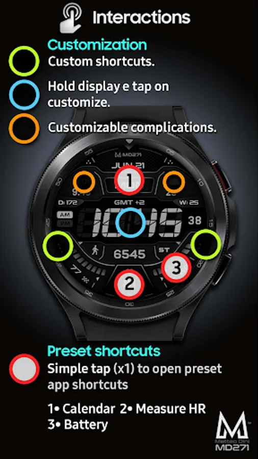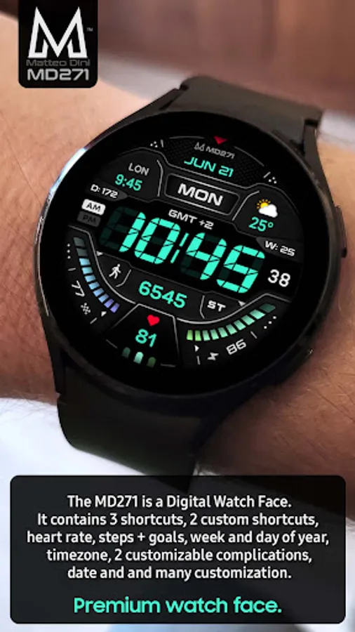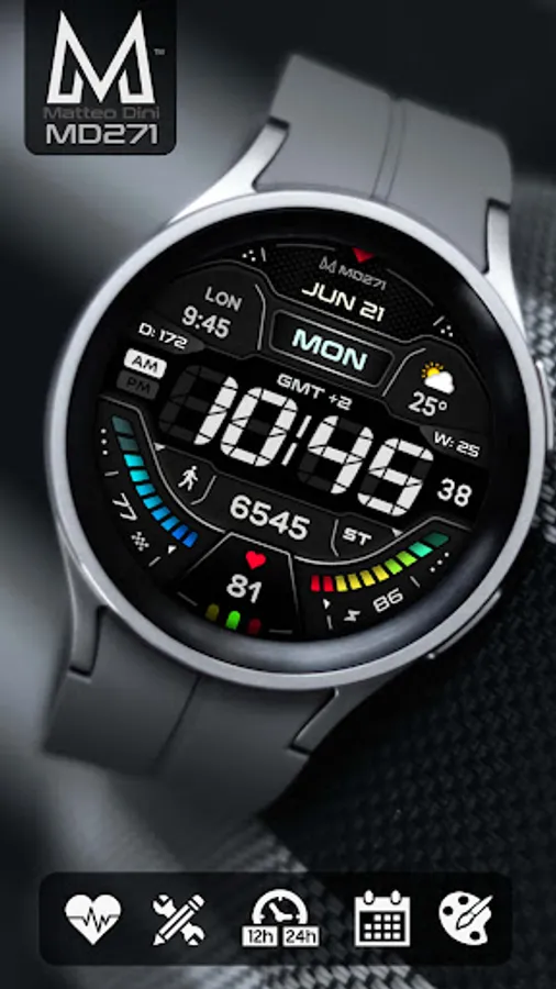 The MD271 is aDigital watch face for Wear OS by Matteo Dini MD.