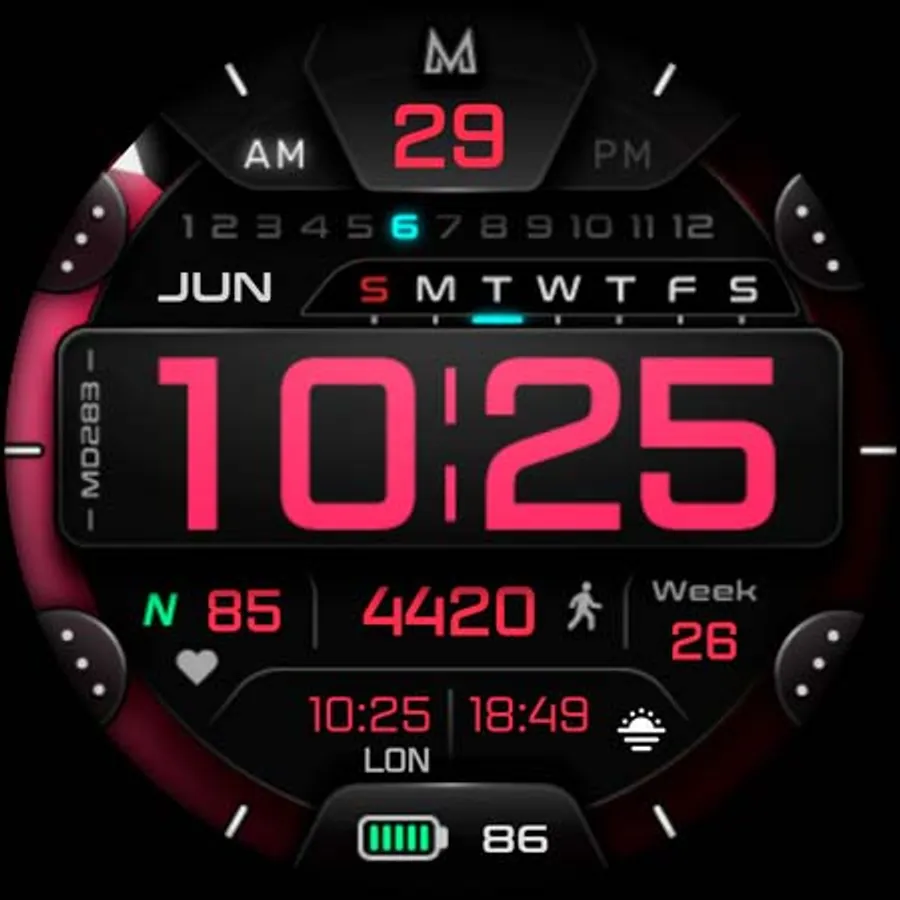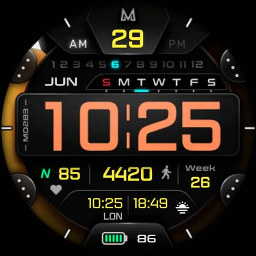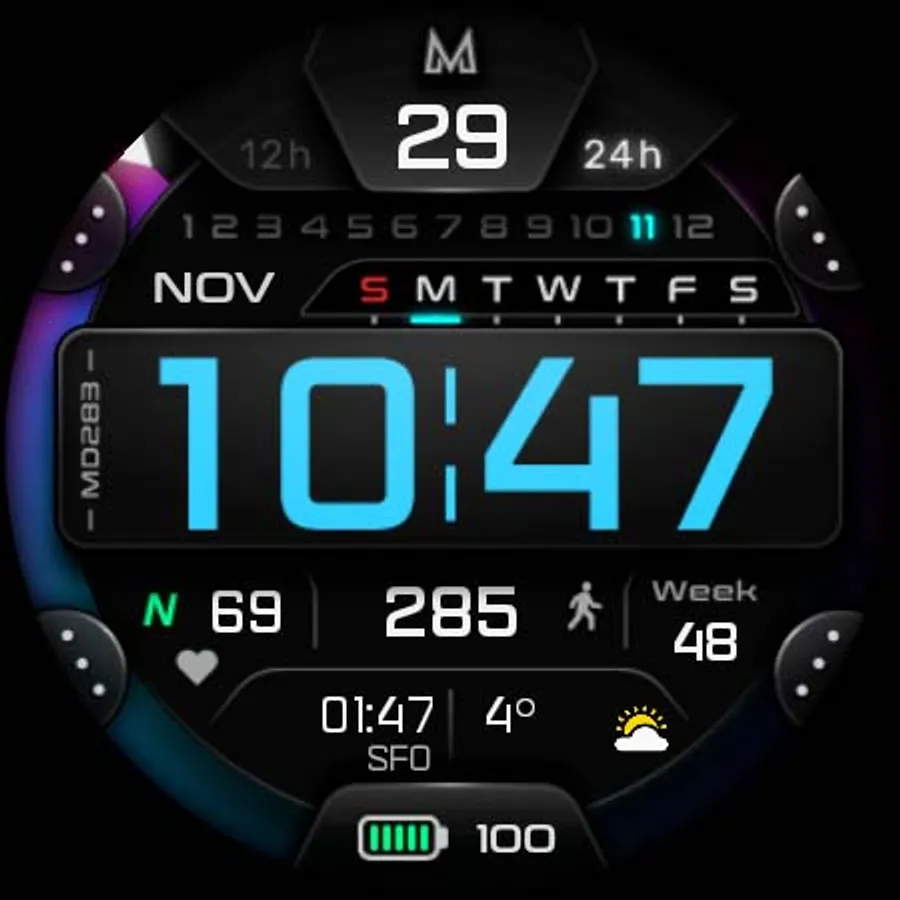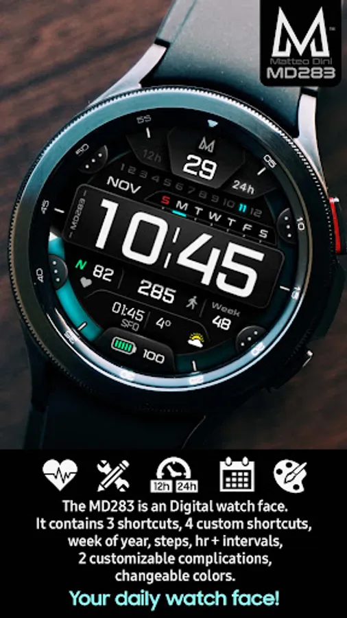 This watch face supports all Wear OS devices with API Level 28+ like Samsung Galaxy Watch 4, 5, 6, Pixel Watch etc.