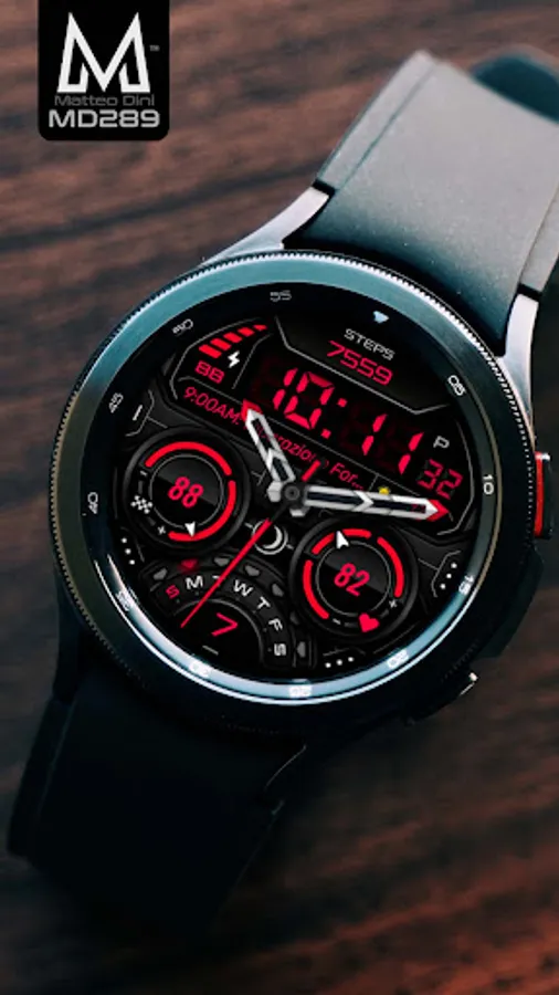 The MD289 is a Digital Wear OS watch face by Matteo Dini MD.