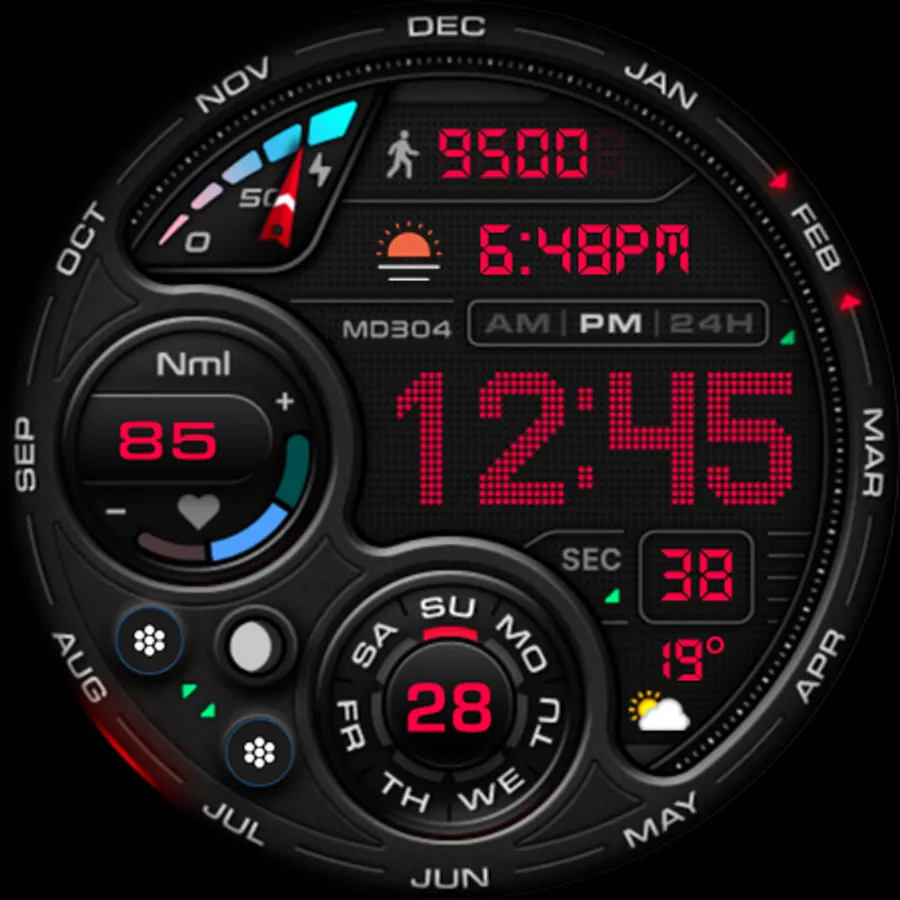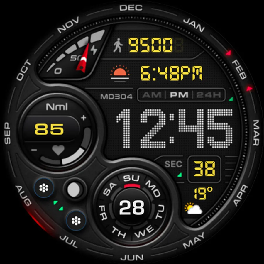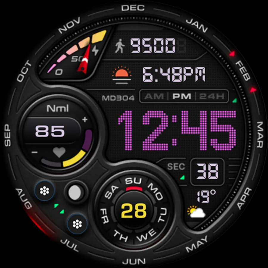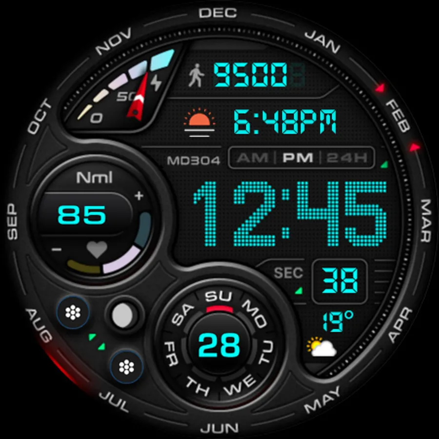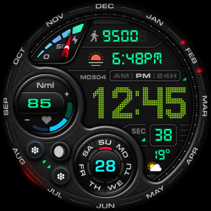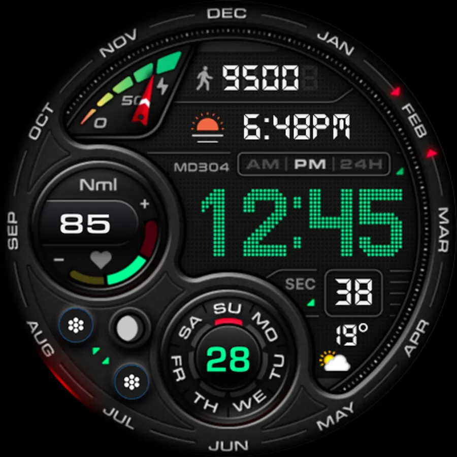 The MD304 is a Modern Digital watch face for Wear OS by Matteo Dini MD.