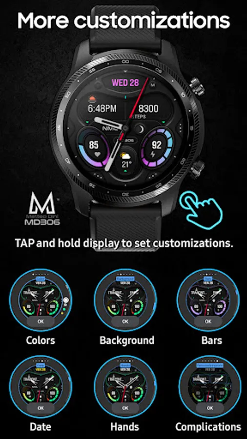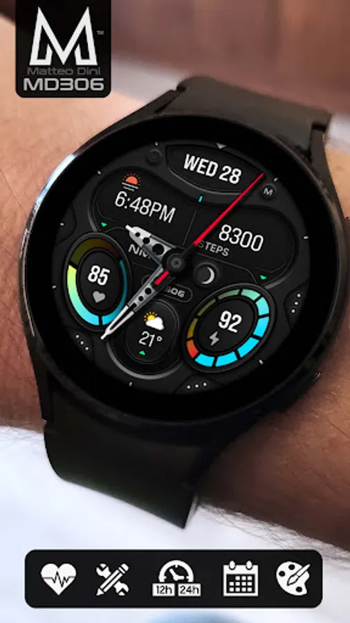 The MD306 is a Minimal Analog watch face for Wear OS by Matteo Dini MD.