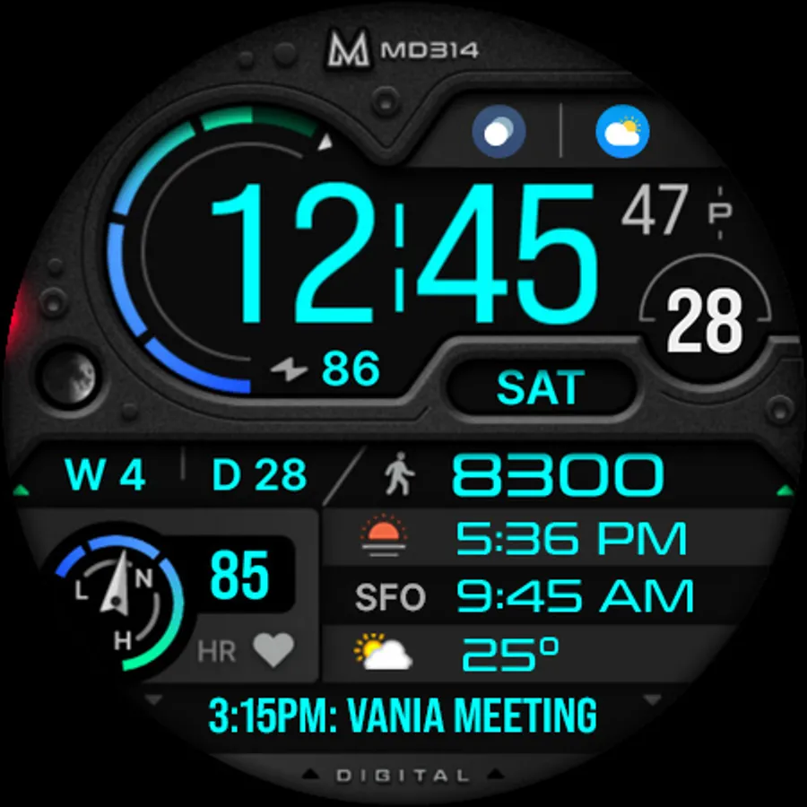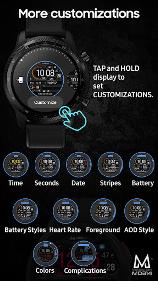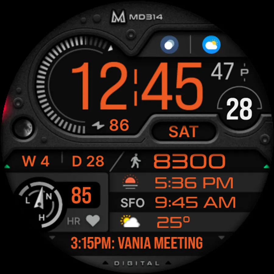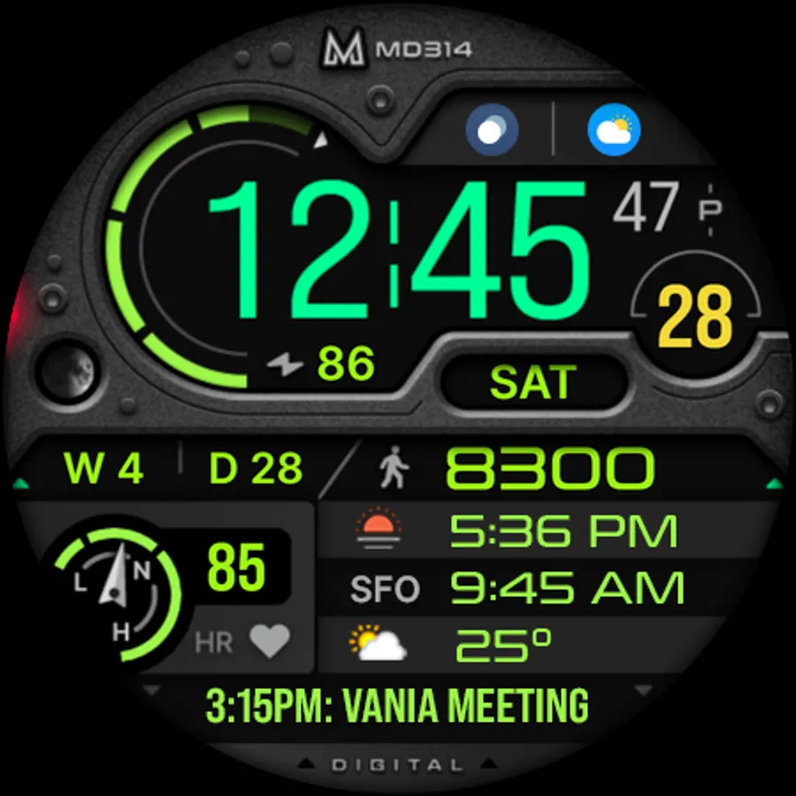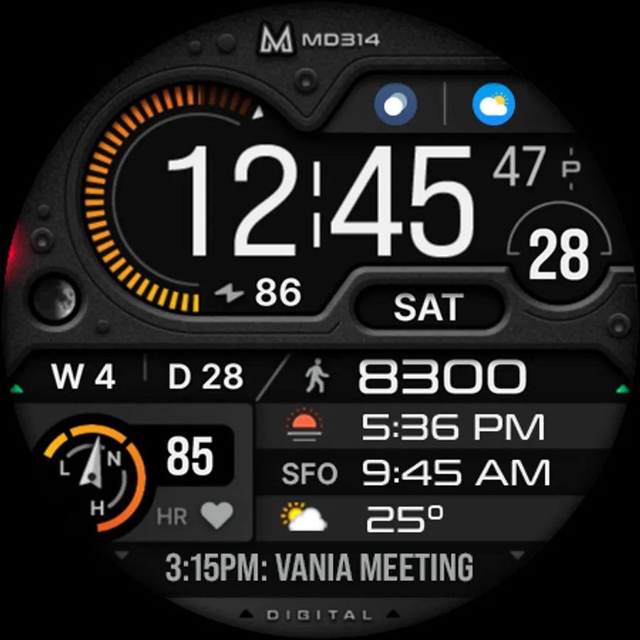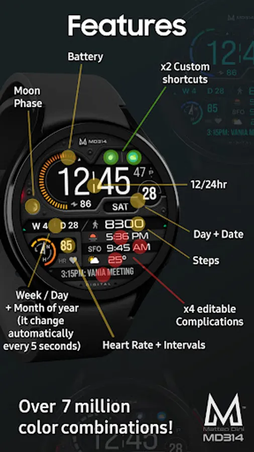 The MD314 is an Digital watch face for Wear OS.