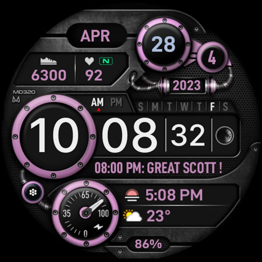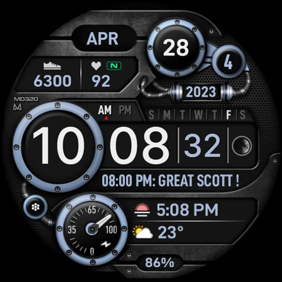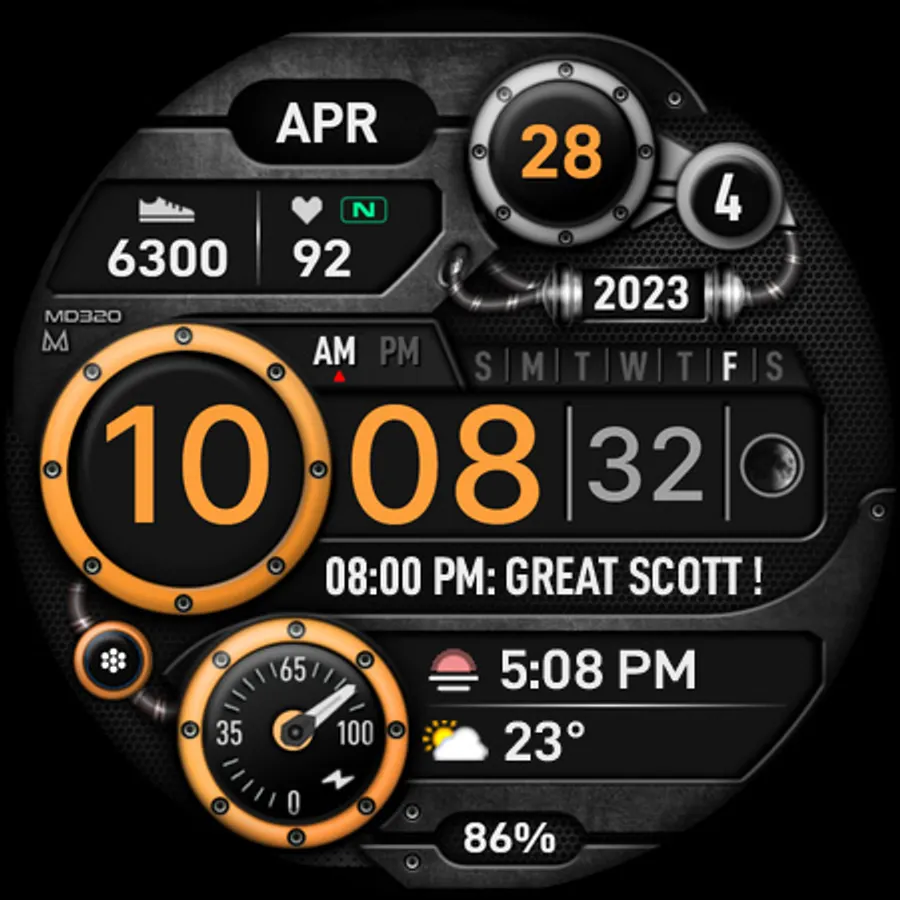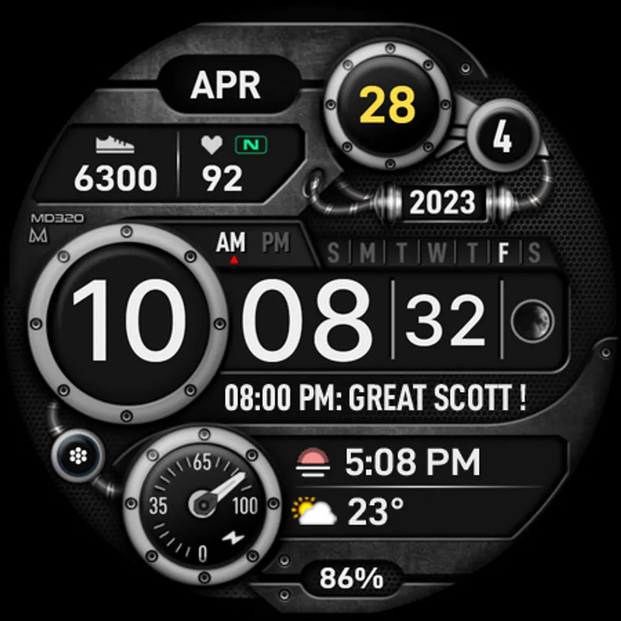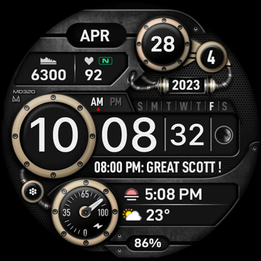 The MD320 is a digital watch face for Wear OS with a steampunk touch.