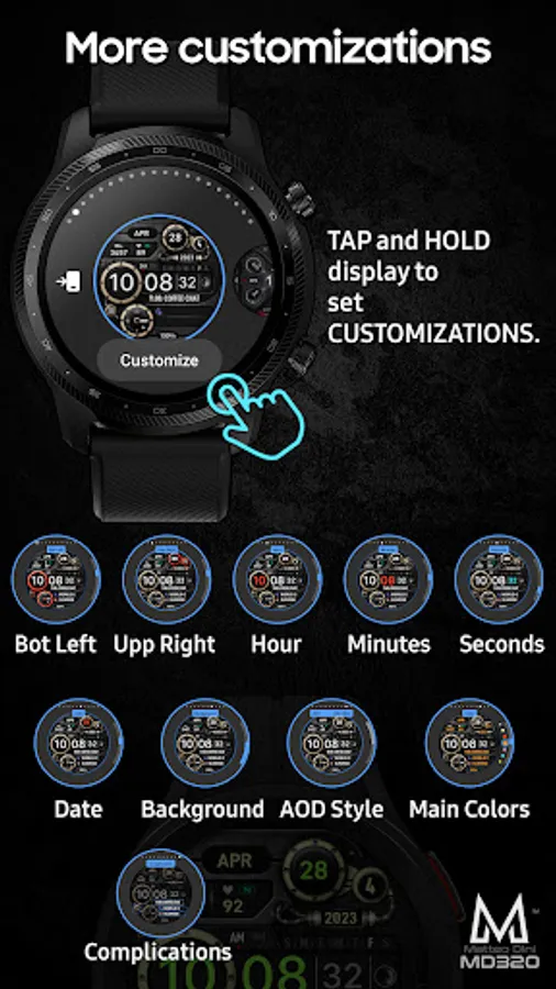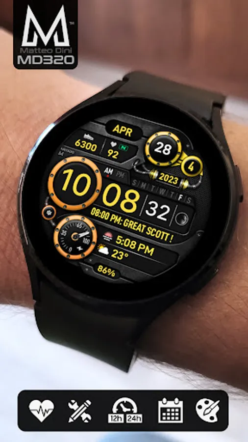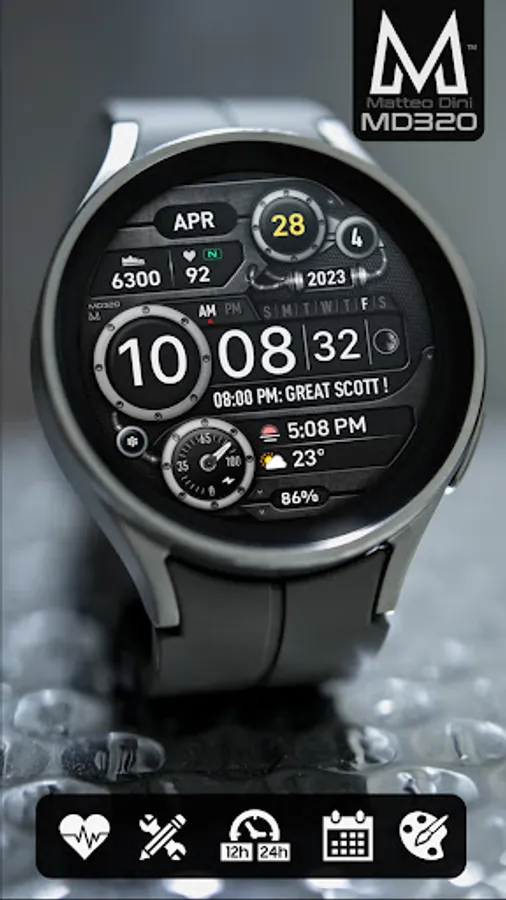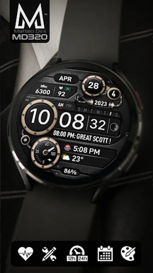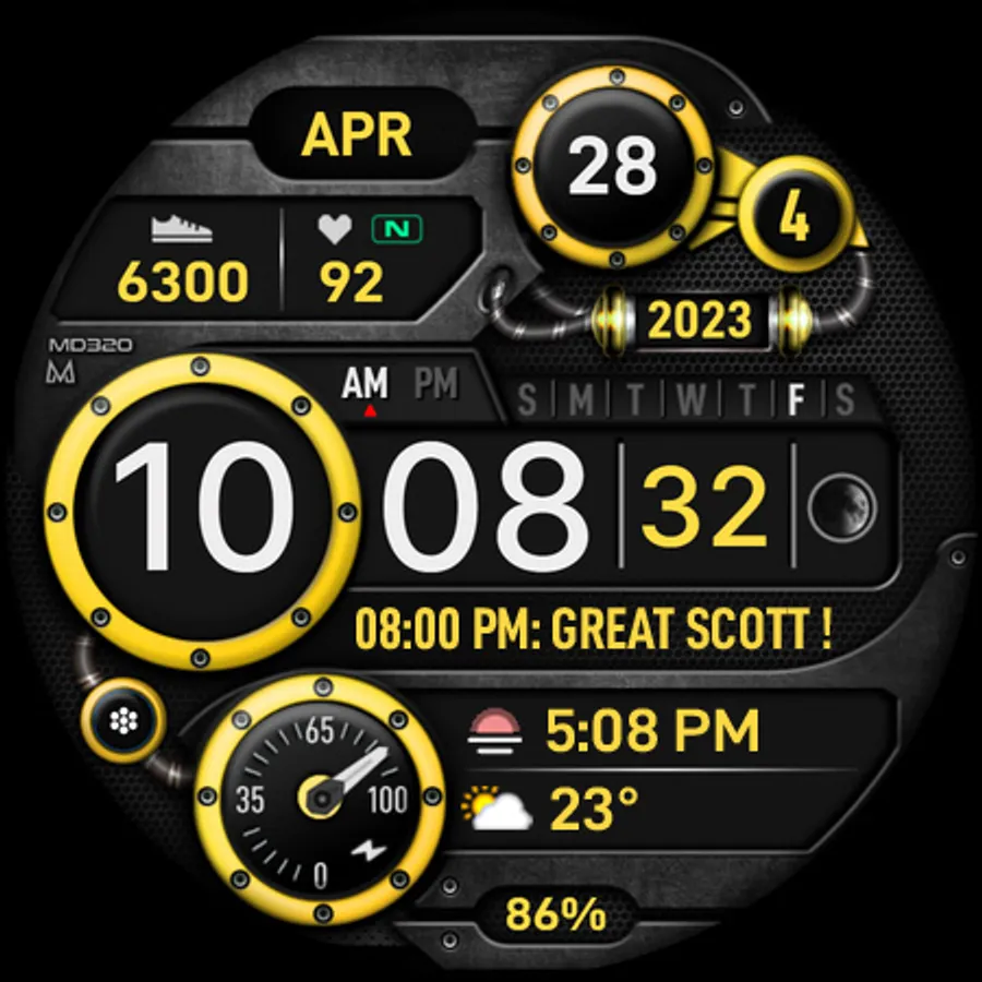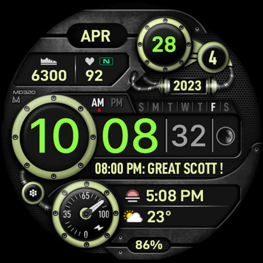 The MD320 is a digital watch face for Wear OS with a steampunk touch.