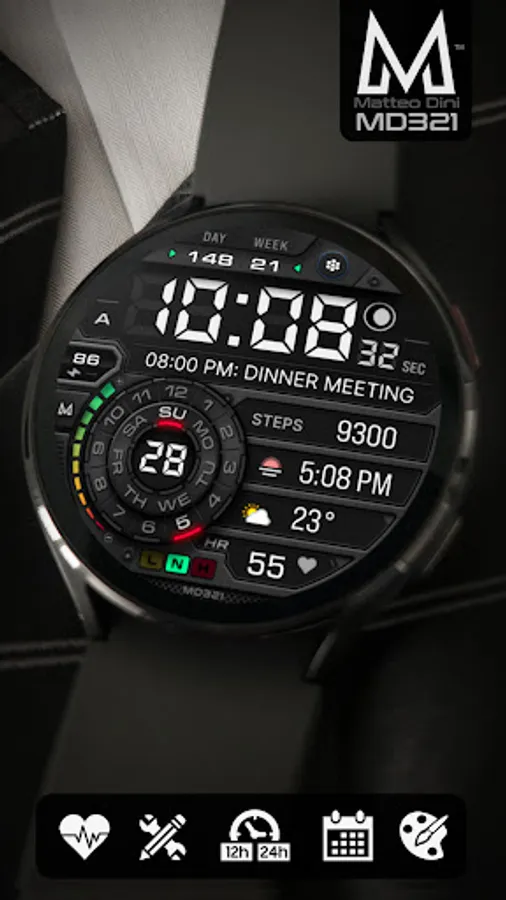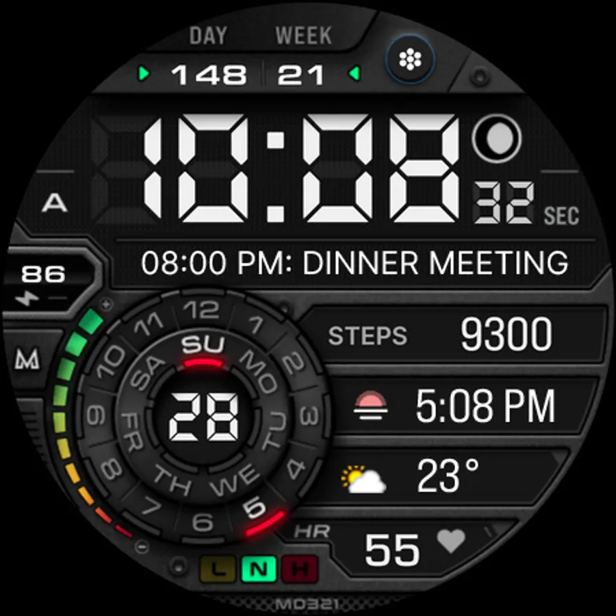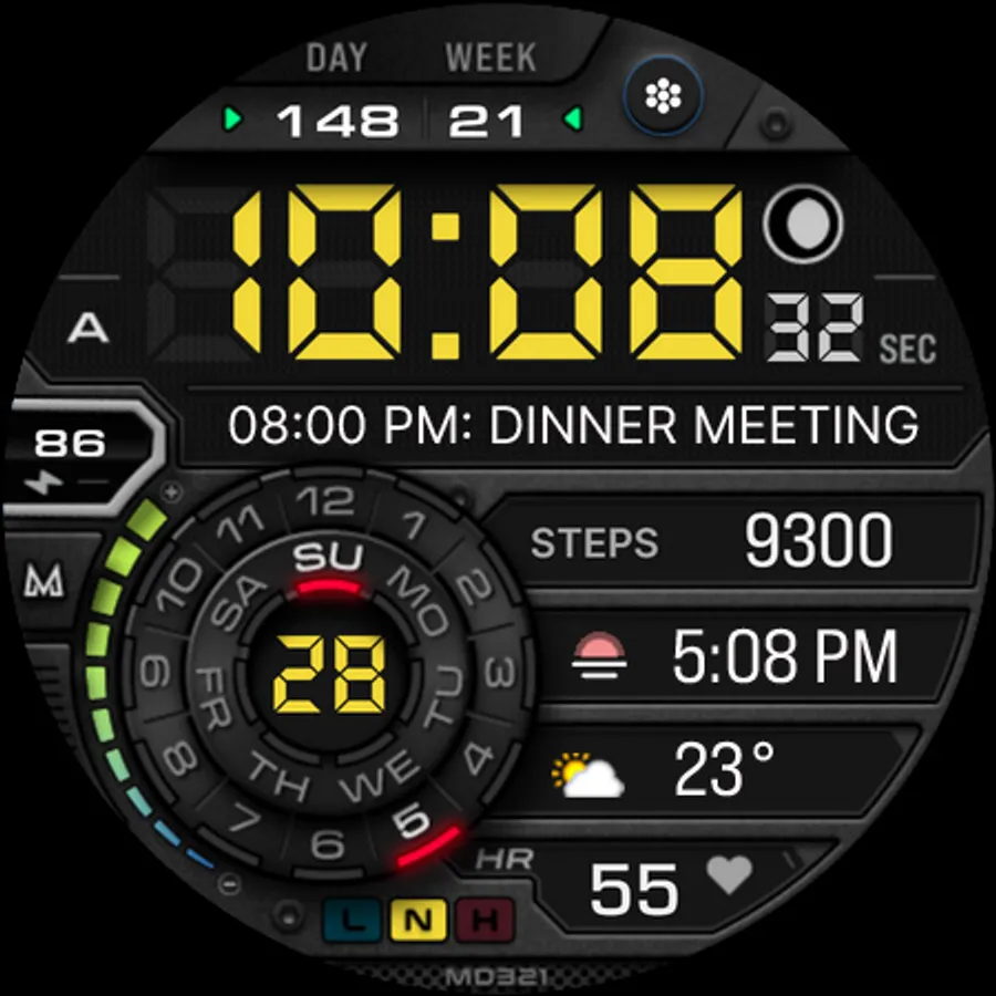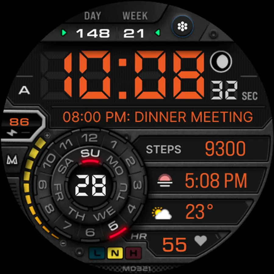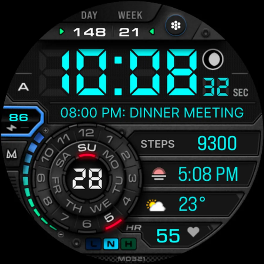 The MD321 is a informative digital watch face for Wear OS with many customizations.
