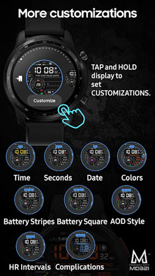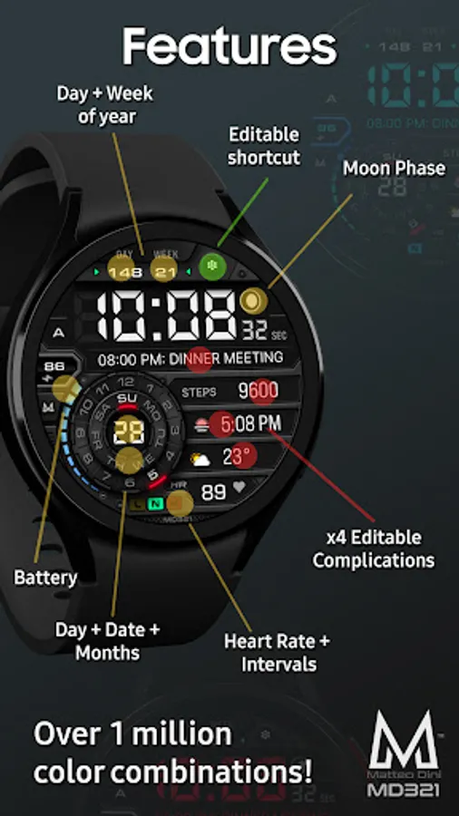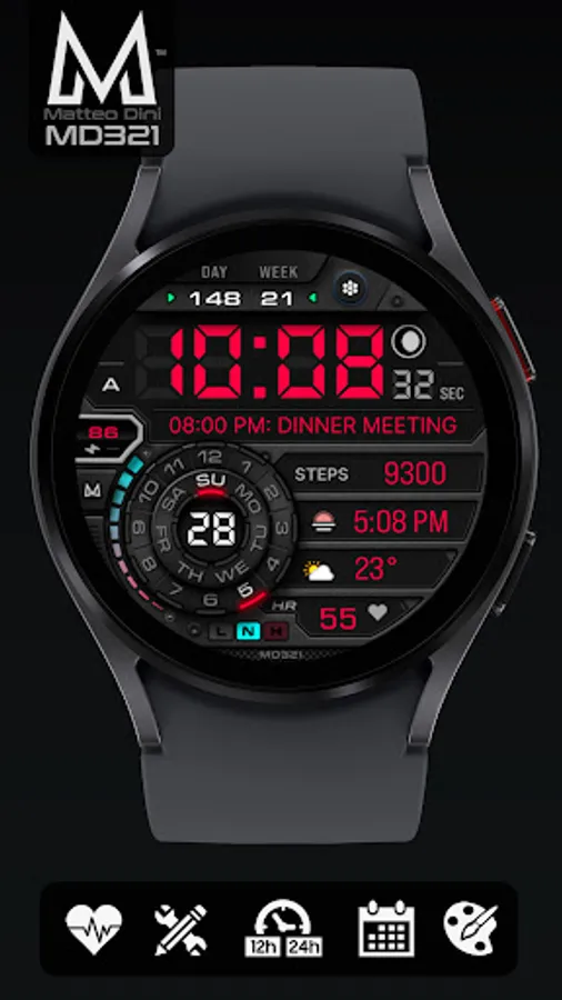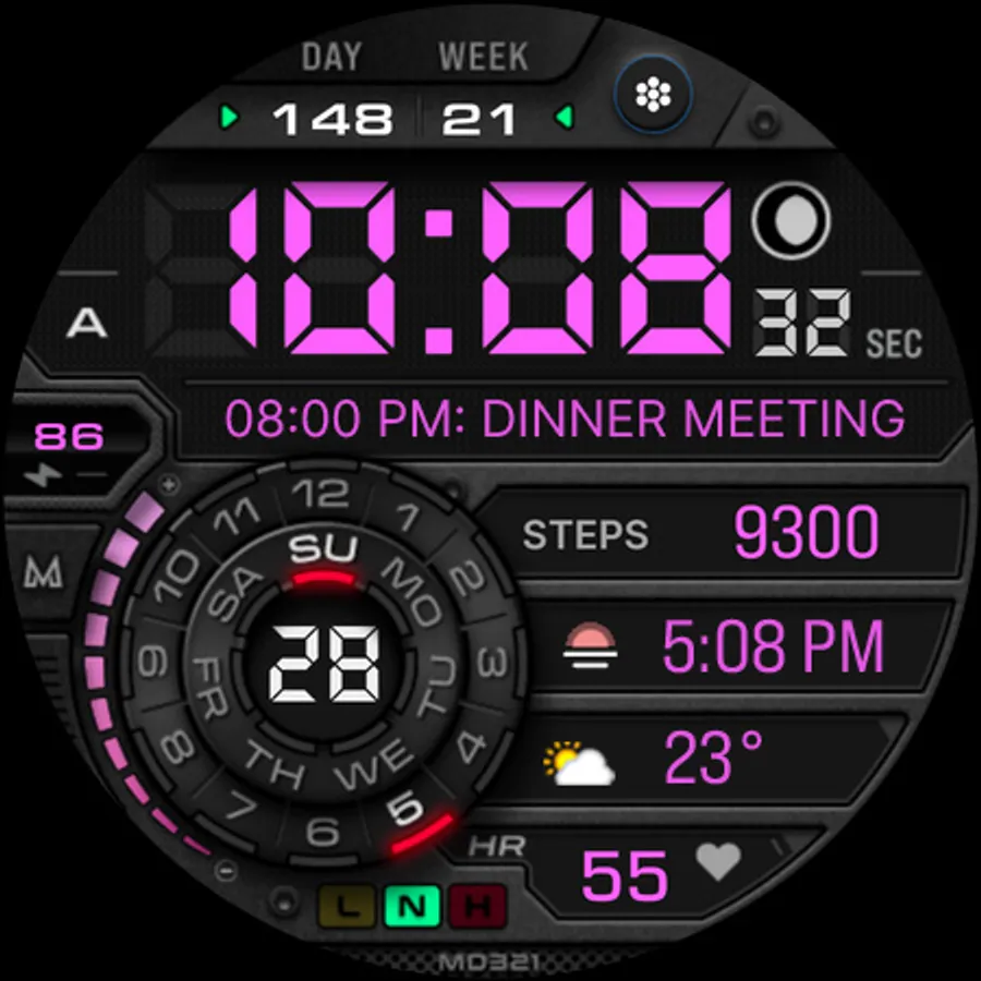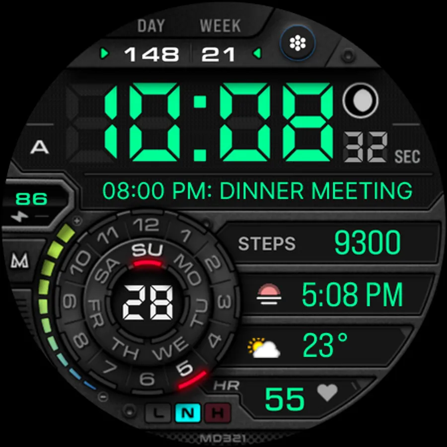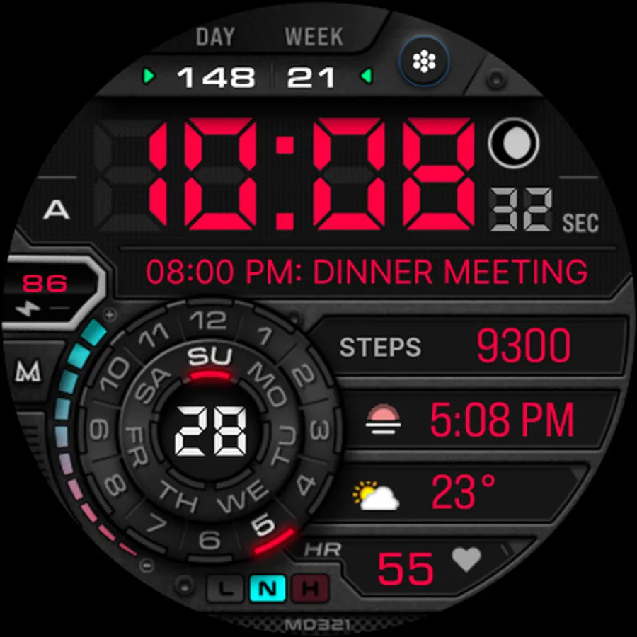 The MD321 is a informative digital watch face for Wear OS with many customizations.