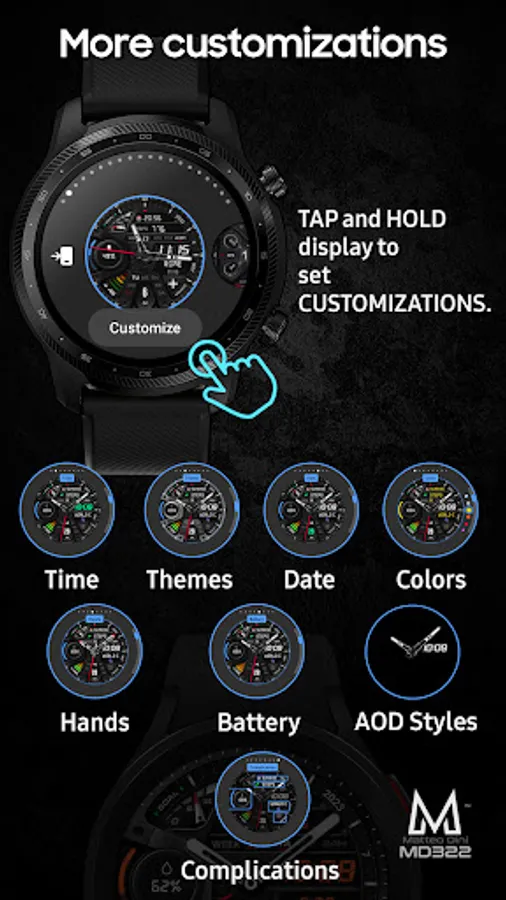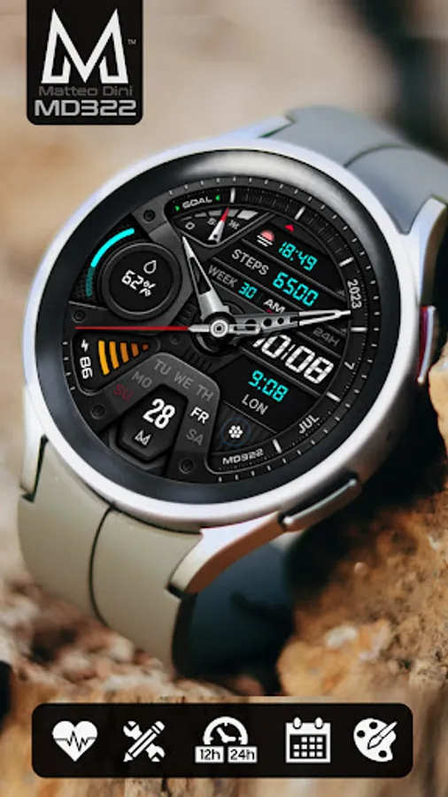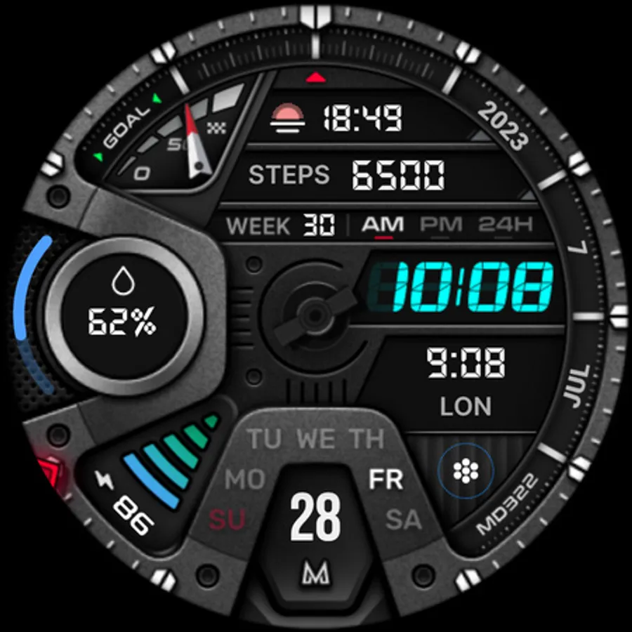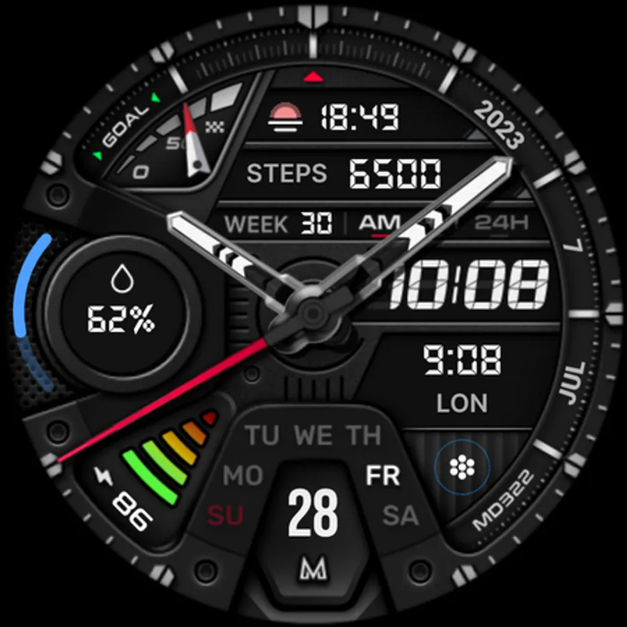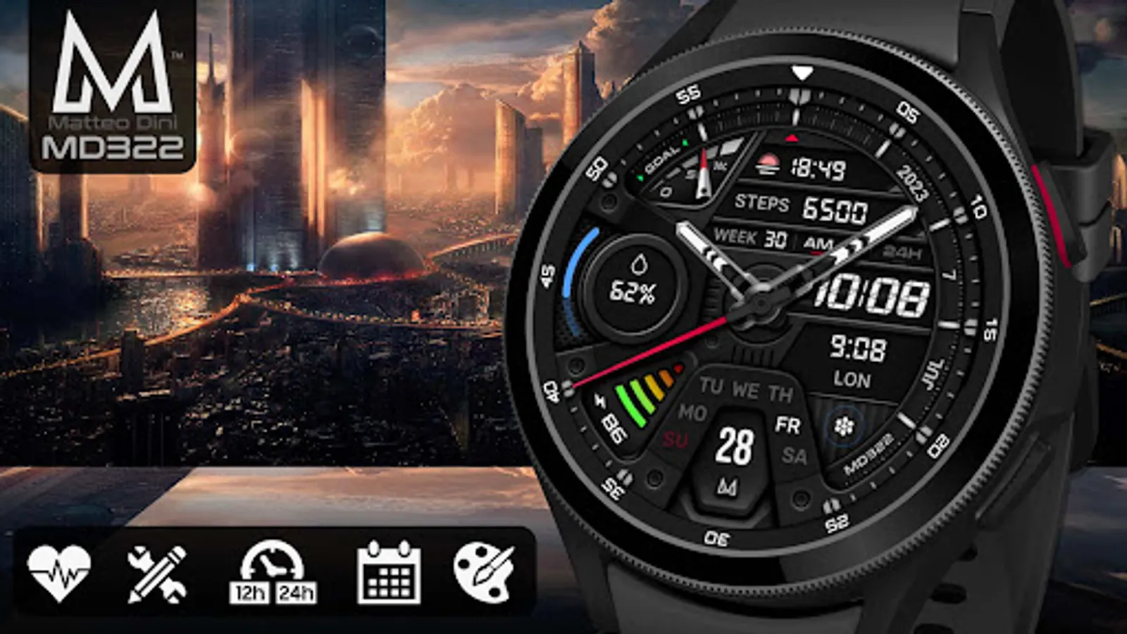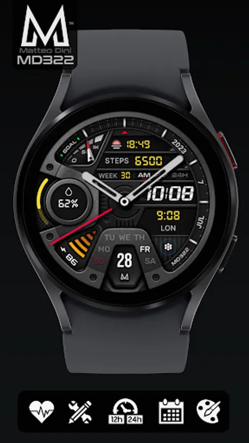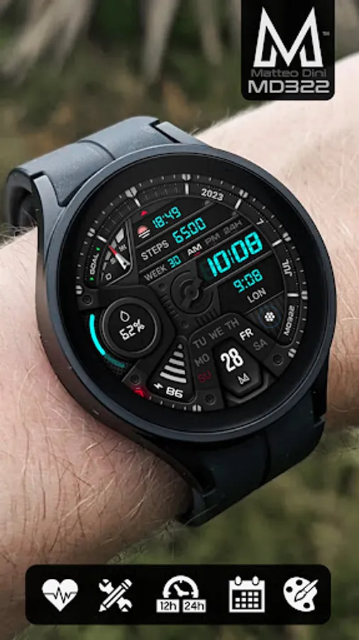 The MD322 is a Hybrid watch face for Wear OS with many customizations.