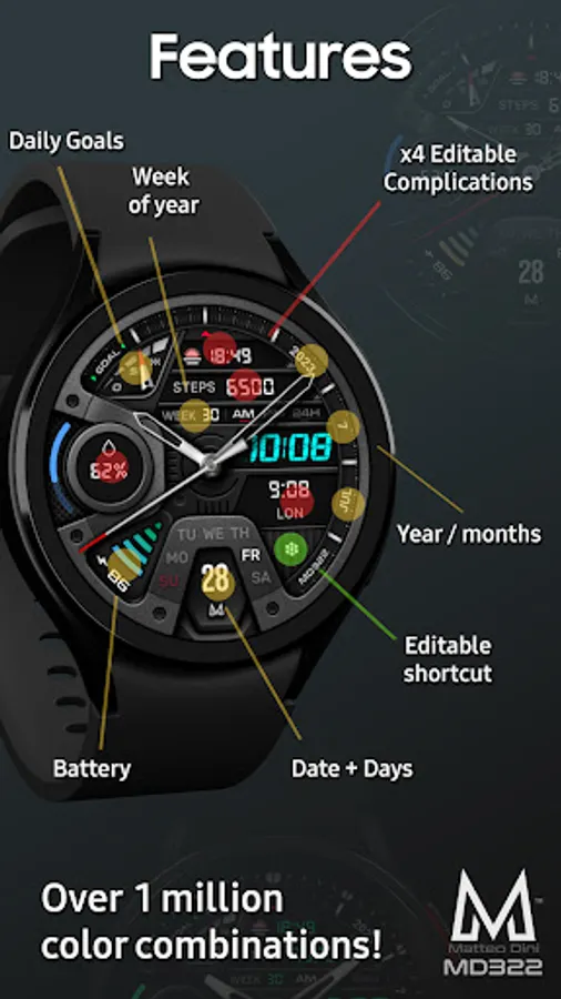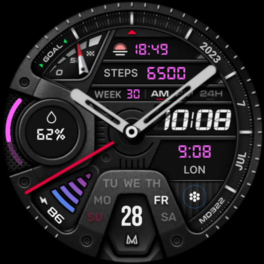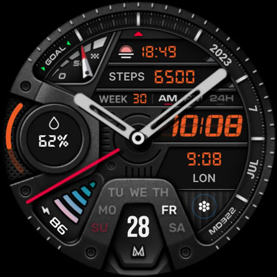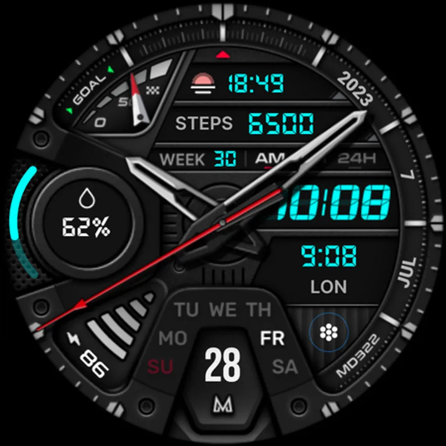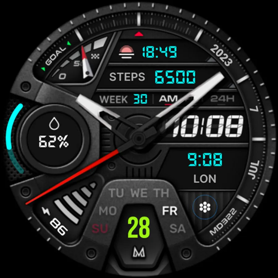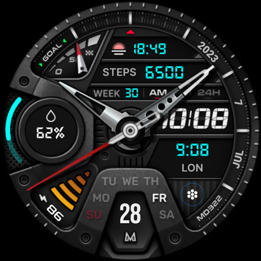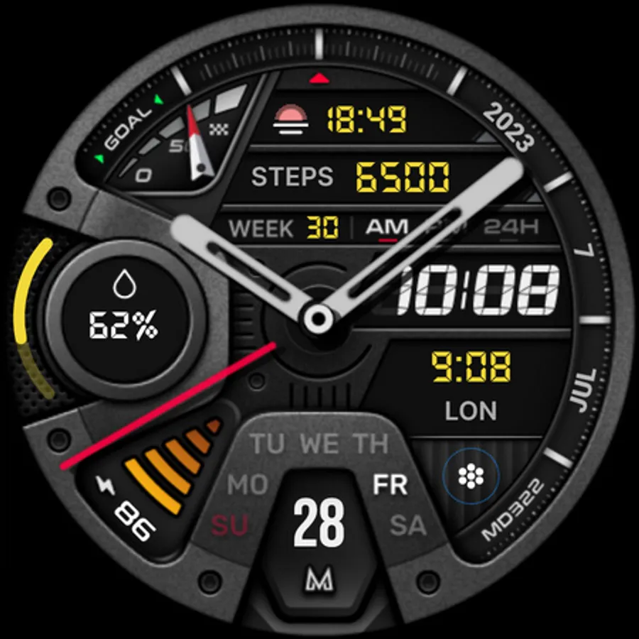 The MD322 is a Hybrid watch face for Wear OS with many customizations.