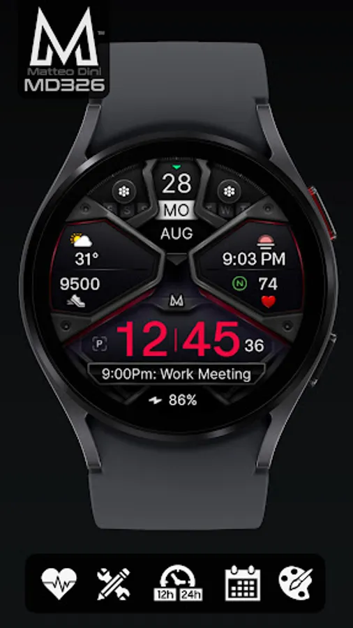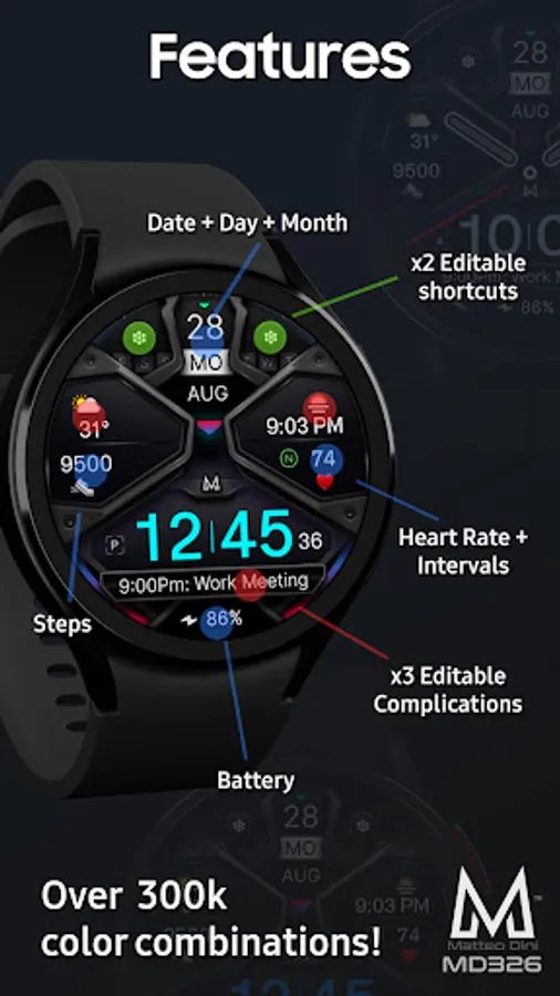 This watch face supports all Wear OS devices with API Level 28+ like Samsung Galaxy Watch 4, 5, 6, Pixel Watch etc.