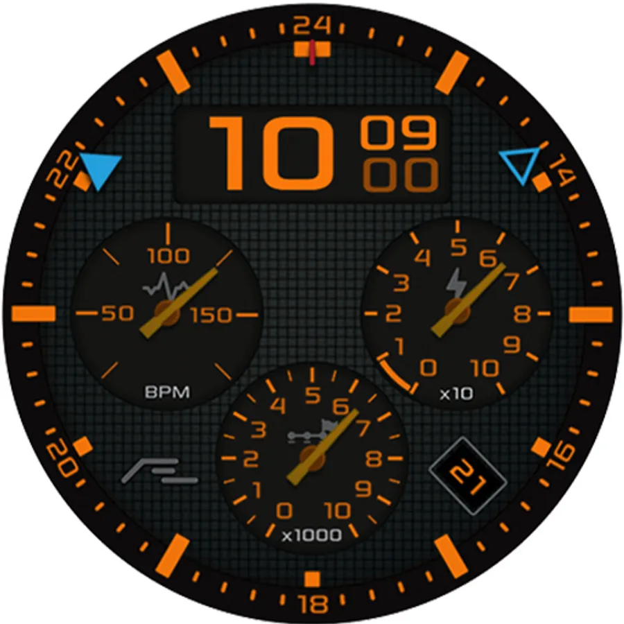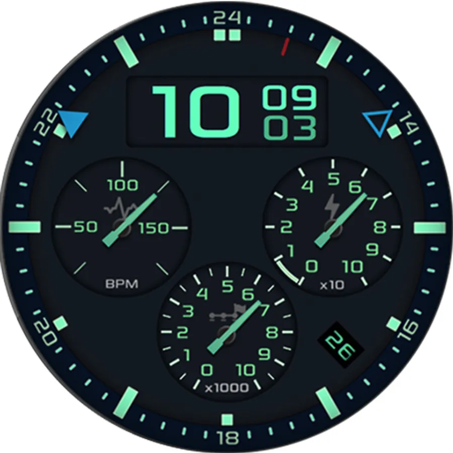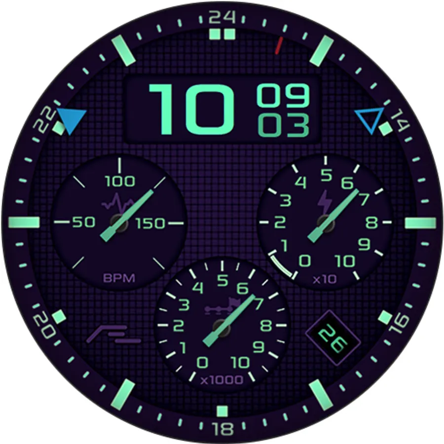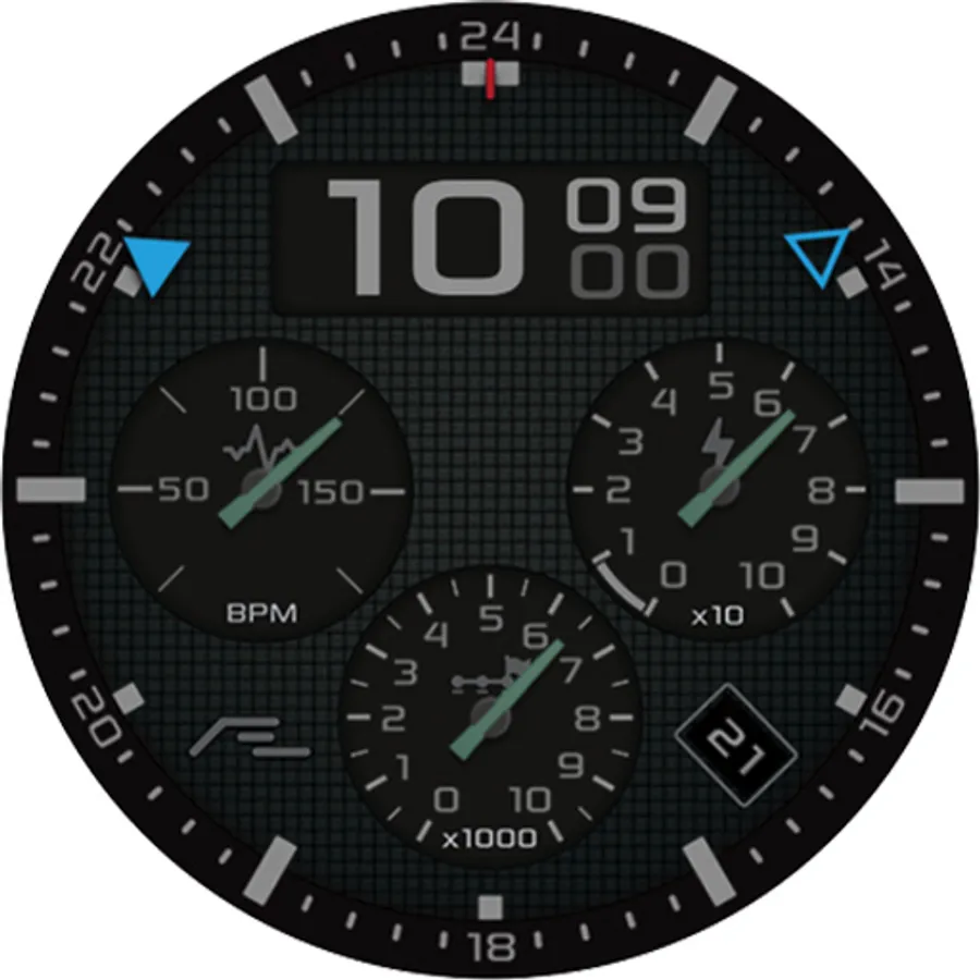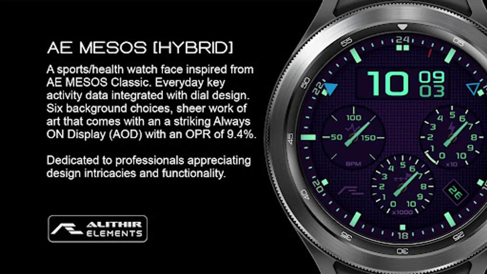 Aviation styled dark luminous dial; sports activity watch face made for the professionals. Six dial choices with activity data made into Subdial. Complimented with AE’s signature ‘Always ON Display’ (AOD) with a dimmed luminosity.