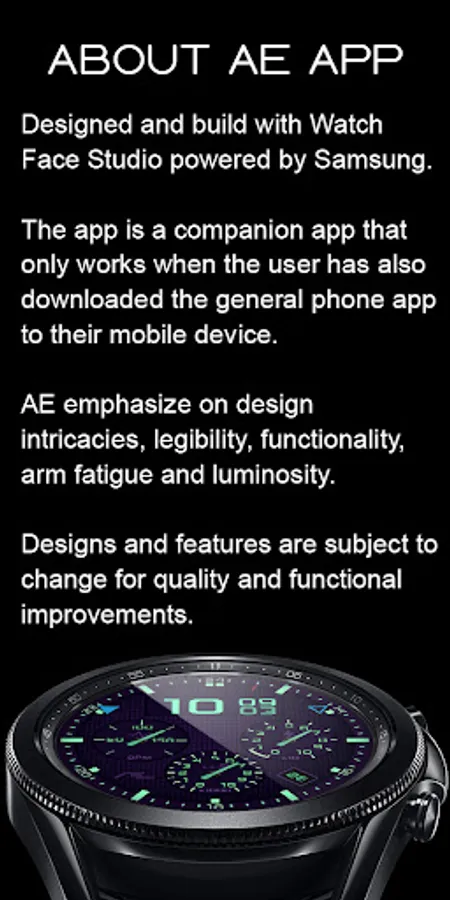 All functions and features of this App has been tested on Galaxy Watch 4 and worked as intended. The same may not apply with other Wear OS devices. App is subject to change for quality and functional improvements.