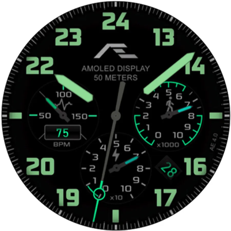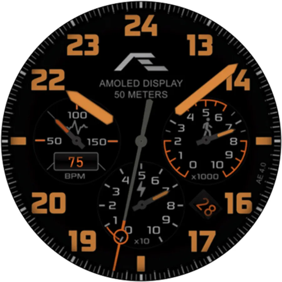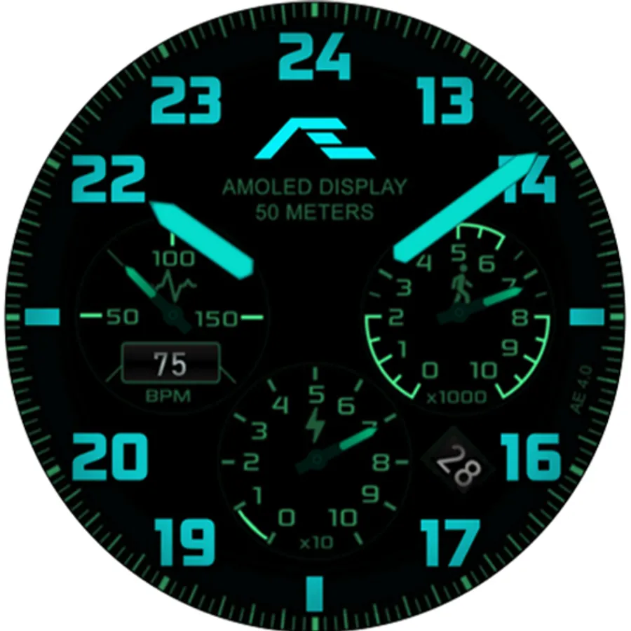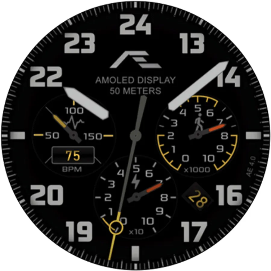 Aviation-styled activity watch face evolved from the popular AE MIDWAY series watch faces with inspiration from the master-crafted BREITLING watches, made for collectors.